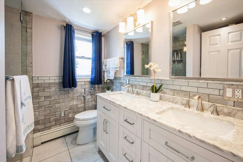 Beautiful 3 family home in the Harbor Point area. The owner occupies the largest unit 1 which is 2330 sq.ft plus the finished lower level. That unit has a nice living room and dining room. There is a large eat in kitchen with white cabinets and ss appliances, a pantry and a closet along with a mud room and door to the deck. Plus there is a full bath on the main level. There are 3 bedrooms on the second floor and 2 full baths. The master suite has a walk in closet and an updated bath with double sinks and granite counters . There are two other bedrooms and a full bath. The lower level is finished with 4 rooms and a bath. So there are 4 bathrooms in unit 1. Unit 2 has Living room eat in kitchen with a pantry, bath with a white pedestal sink and tub and a bedroom. Unit 3 has living room , large kitchen, bath and 2 bedrooms. There is a lovely landscaped yard, shed, deck and patio.