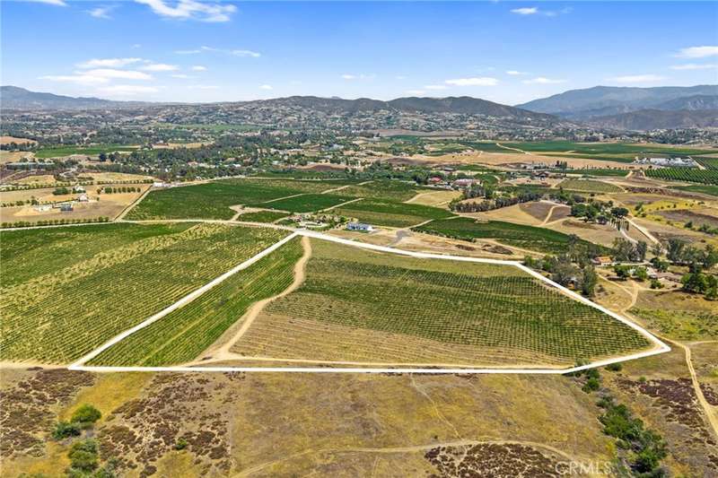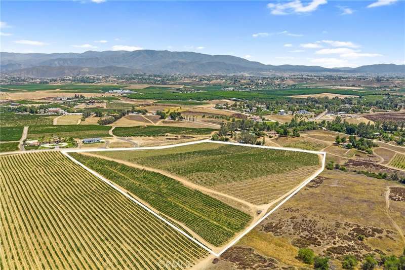 This vineyard is one of the best available sites for a custom home or winery that is available in the Temecula Wine Country. Zoned "Wine Country - WC", with a mature vineyare, existing water meter, fire hydrants located in the street, electricity available adjacent to the parcel - this will be the perfect parcel for your Winery area project. The topography is beautiful and gentle, and will require very little grading for a home or winery location.