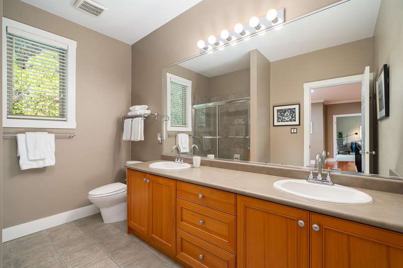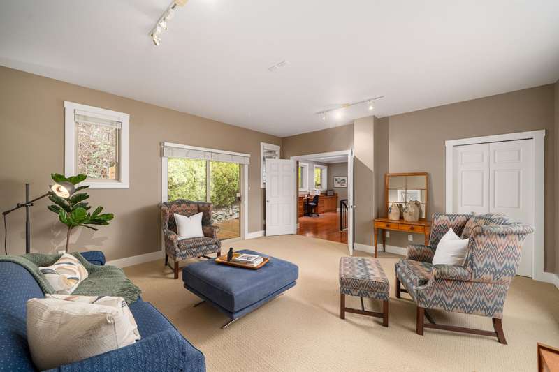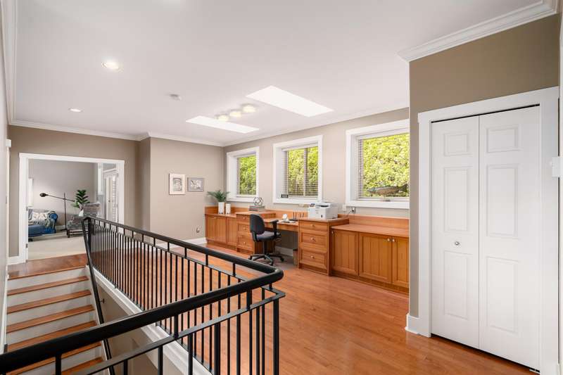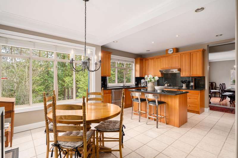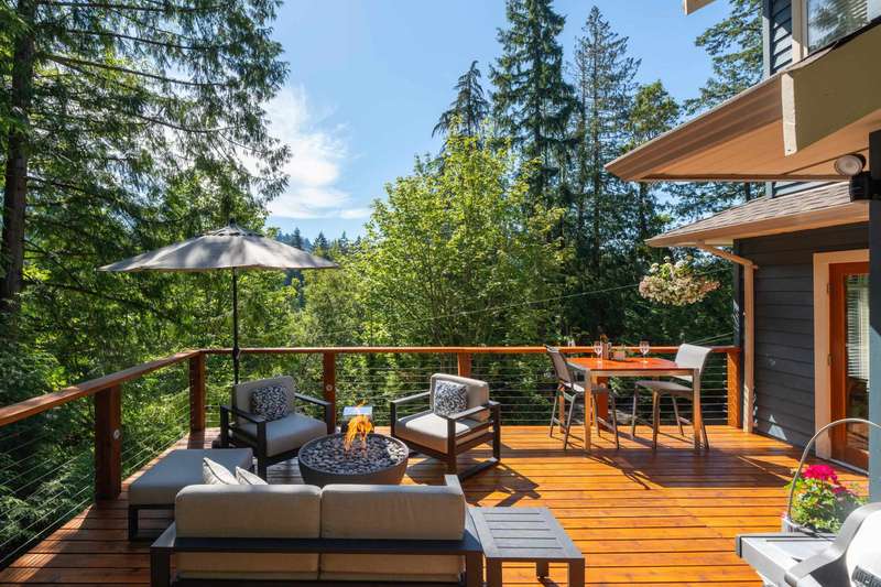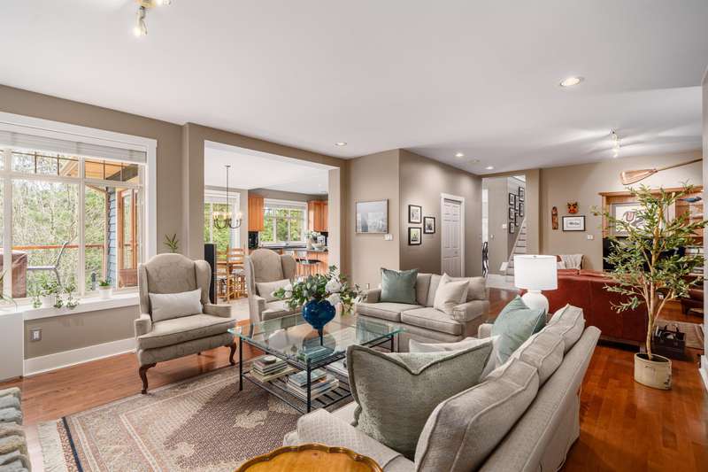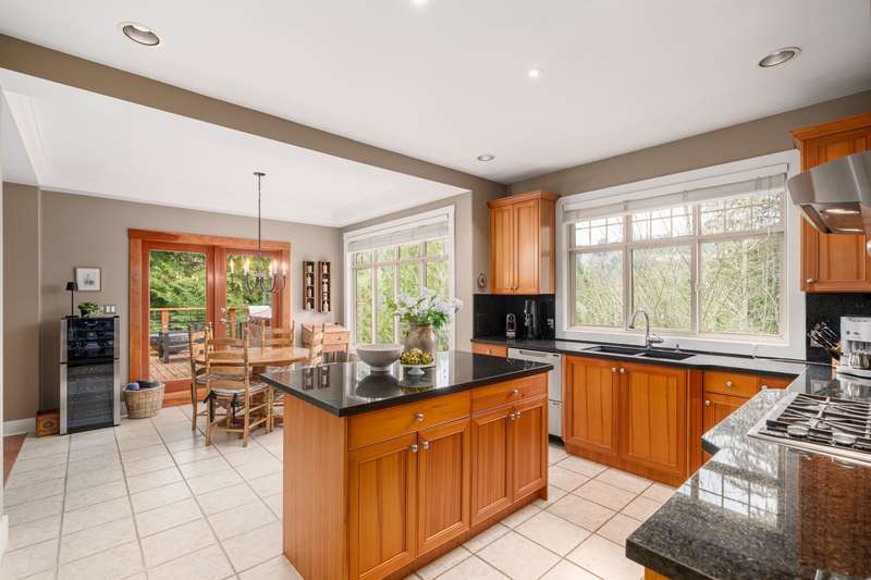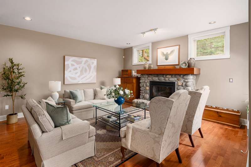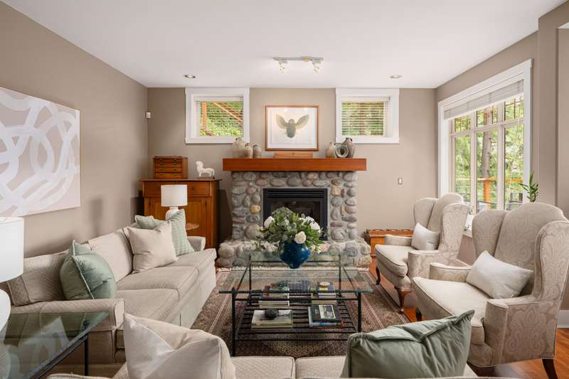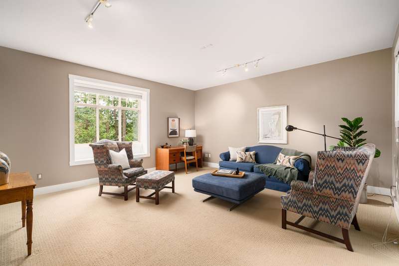 You must get inside this gorgeous home to appreciate it. A huge, private 12,056 sq. ft. lot, with 4-bed & 2 .5-baths, close to 3000 Sq Ft of living space. Impeccably maintained and updated by its original owner, it features spacious living areas, a river rock gas FP, and a media room. The kitchen & dining area open to a sunny 360 sq. ft. deck w/ fire pit, perfect for entertaining. Upstairs, the primary suite boasts a spa-like ensuite & WIC. Two beds have charming window seats, while the fourth can be a family room. A built-in office nook adds versatility. Radiant in-floor heating, tankless H/W, & dbl garage enhance comfort. Backing onto Seaview Trail, this home offers privacy, nature & easy access to Eagle Harbour Beach, top schools, & parks. ideal West Coast retreat.OPEN SUN 2-4 PM