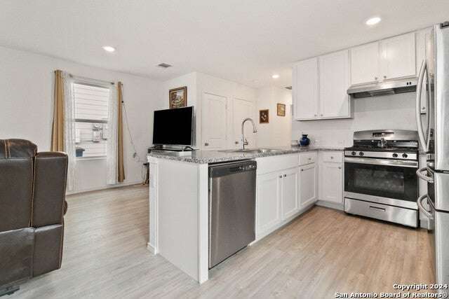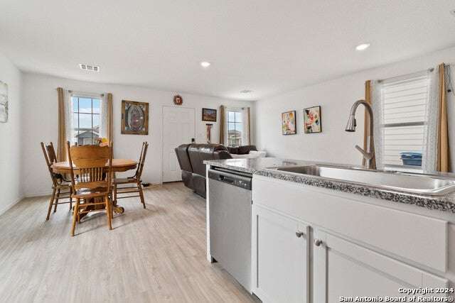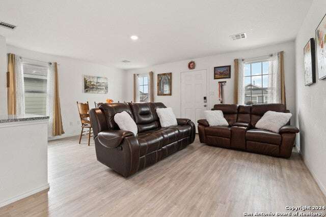 Charming move-in ready home. Light and bright kitchen with an open feel. Granite counters, all major appliances stay along with washer and dryer. No carpet throughout house. Large yard with privacy fence. The subdivision offers an ideal blend of comfort, convenience, and community living with the large amenity center offering pool, barbecue area with fireplace, and onsite gym. Owners added a large shed in the backyard for extra storage. New school opening in August '24 within the neighborhood in the thriving Medina Valley School District.