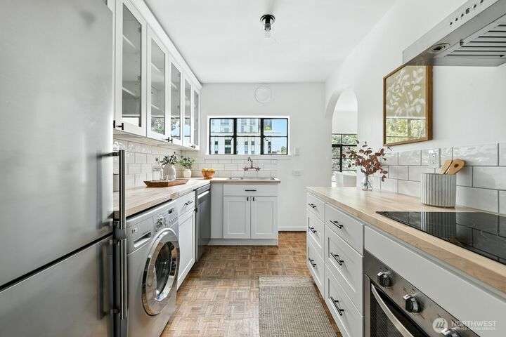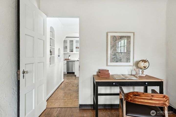 A rare opportunity to own one of Seattle’s most storied architectural treasures. Built in 1930, El Monterey is a landmark Spanish Colonial community without rival in Seattle. No. 19 lives more like a private home than a condo, complete with its own terrace & garage parking. Nestled within a boutique enclave of just six, it offers lofty ceilings with exposed beams, brand new kitchen, updated bath, storage & blissful reprieve from 11th Ave. Wrought-iron, Talavera tile, terracotta rooflines & lush courtyard grounds flaunt timeless elegance. Leaded-glass windows filter golden Southernly light, hardwood floors carry the patina of history & all create a feel that is worlds away while city amenities remain just steps beyond. Fab 95 stroll score.
