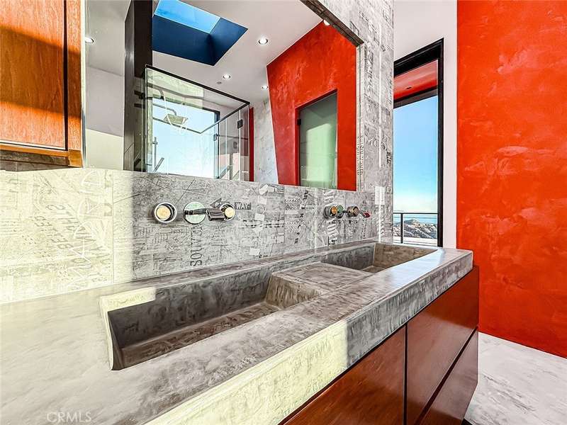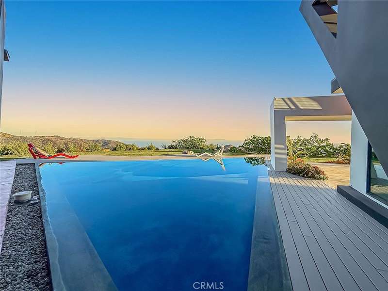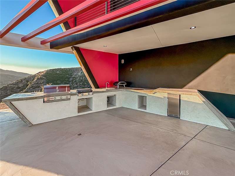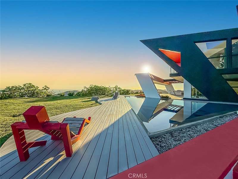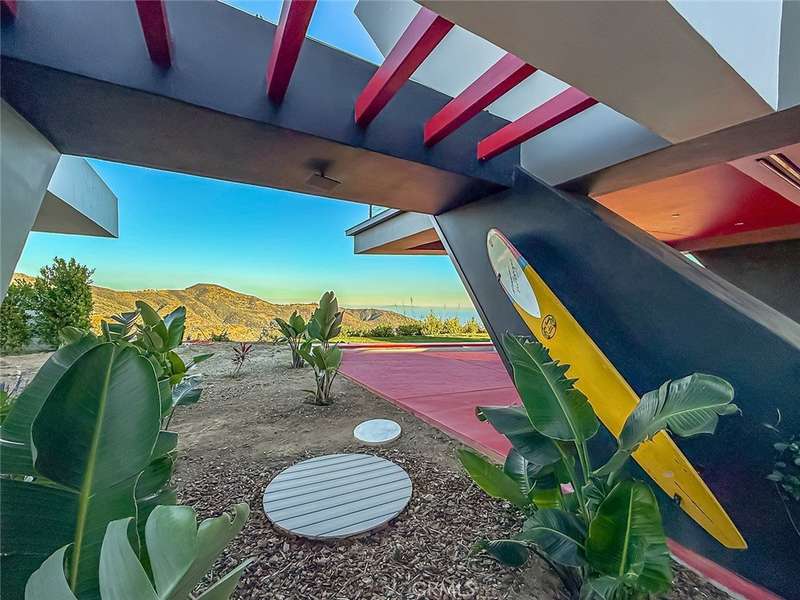 Soaring jetliners & sweeping views spanning Catalina to Santa Monica set the stage at The Aviator—a striking, architecturally significant Malibu escape by renowned designer Amit Apel. Perched at the end of a private road at the top of the world, this bold, modern sanctuary draws inspiration from the grace and precision of flight. A sculptural interplay of steel, crisp architectural lines, and signature circular windows create a sense of movement and lift, giving the residence its unmistakable presence. This one-of-a-kind retreat is equipped with a state-of-the-art Smart Home system that controls lighting, security, pool, and solar system—all automated & effortlessly accessible. Through the glass entry, the home unfolds into a dramatic open-concept living space defined by custom art, rich textures, & dynamic architectural forms. Floor-to-ceiling retractable walls vanish to frame endless ocean, canyon, and skyline views, blurring the line between indoors & out. The sleek European-inspired kitchen features premium stainless steel appliances, a six-burner gas cooktop & spacious center island with a breakfast bar with custom seating. A warm yet sophisticated ambiance flows seamlessly into the dining and family areas, where bold style and comfort unite. The main level also includes a bedroom with and a circular window. Ascending the stairs, 2 luxurious primary suites await. The first boasts sweeping ocean & Malibu city vistas and an Art Deco–inspired bath with stunning glass-enclosed shower, soaking tub, dual sinks, & mountain views. The second primary suite mirrors the home’s refined design language, showcasing bold lines and vibrant accents, with panoramic views of Santa Monica and the Pacific. Its spa-like bath offers a deep soaking tub, dual sinks, and custom shower. A third “hidden” room serves perfectly as an office, lounge, or creative studio. The outdoor living spaces are a world unto themselves. A dramatic triangular zero-edge pool and spa appear to float above the horizon. The fully outfitted outdoor kitchen—complete with BBQ, grill, refrigerator & pizza oven—invites unforgettable alfresco dining. Additional highlights include a private putting green, oversized fire pit with flame wall, and an open-air movie screening area for evenings under the stars. Designed for both spectacular entertaining and self-sustaining independence, The Aviator offers the rare ability to live comfortably “off the grid.” This is more than a home—it is a statement of vision.