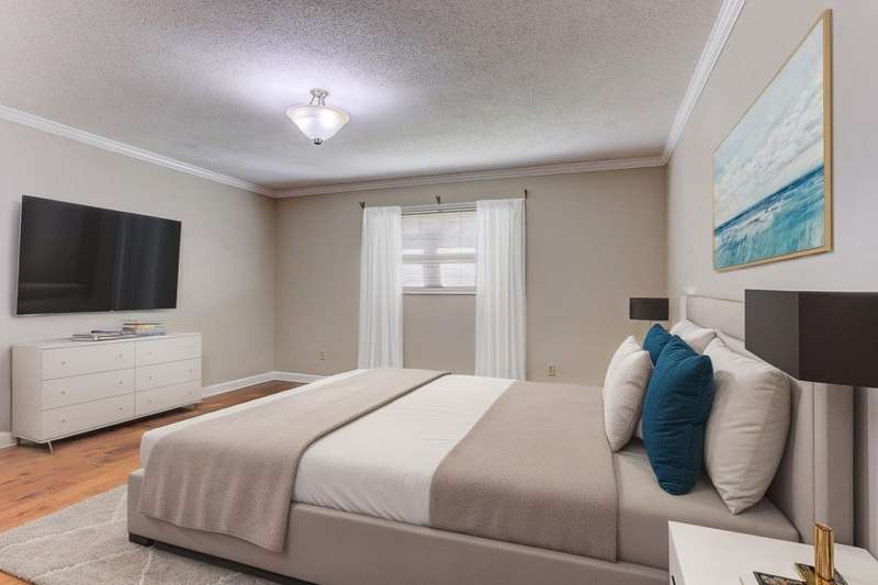 Back on the market- and better than ever! Don't miss this rare chance to own a beautifully updated home with gorgeous Gunite pool and 4 spacious bedrooms on the main level. Plus a huge bonus room with full bath upstairs- (could easily be called a 5th bedroom.) Large pantry, Separate laundry room, and a second bonus room ideal for a home office. Roof: 2023. Updated kitchen and primary bath. Stylish flooring throughout. Several wide 34 inch doors. Gas cooking. Vented gas fireplace. 2 car side-load garage with access from the cove side of a corner lot. This move in ready home is the perfect mix of comfort, updates, and outdoor living. Some photos are virtually staged