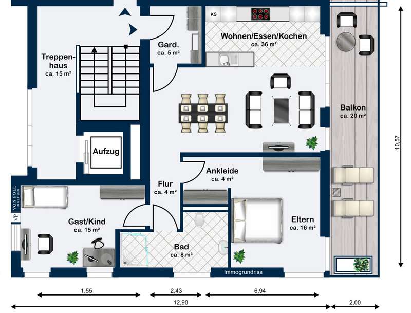 We are delighted to present this new-build project to you: An exclusive residential complex on a quiet plot with a view of Bultkamp Park. A total of 3 houses are being built here, each with 6 high-quality condominiums. This project offers various apartment sizes with well thought-out floor plans ranging from approx. 53 m² to approx. 91 m² of living space and varying numbers of rooms from 1 to 3 rooms. DESCRIPTION CONDOMINIUM | HOUSE 2 | APARTMENT 3 | TOP FLOOR LEFT This apartment is located in House 1 on the upper floor and has two bedrooms, a spacious bathroom with walk-in shower and an open-plan kitchen/living room with dining room and lounge area. On the adjoining balcony you can enjoy the hours of sunshine with family or friends and enjoy the peace and quiet of this high-quality residential area. A highly efficient air heat pump and a solar thermal system are planned to ensure a sustainable heat supply and resource-saving living. All apartments are heated via underfloor heating. The exact features of this project can be found in the construction and service description. We will be happy to send you these documents on request. Have we aroused your interest? We would be happy to provide you with detailed information about this property and its prospects in a personal meeting.
