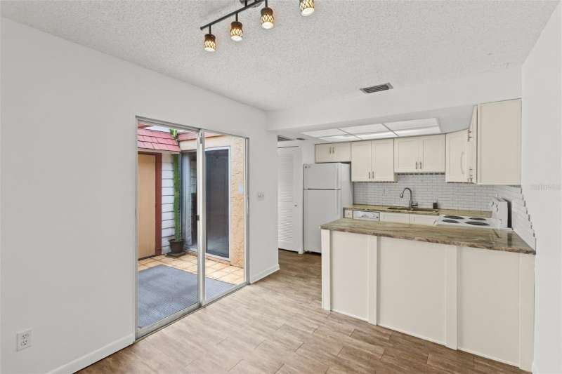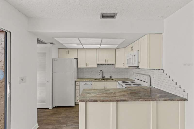 One or more photo(s) has been virtually staged. Motivated seller offering 3 months of HOA fees PAID totalling $1,650! Come live in the heart of Palm Harbor in a lush 58 unit, age qualified community with a beautiful pool and clubhouse. Enjoy this renovated villa with new kittchen cabinets, granite counter tops, dishwasher and microwave as well as new vinyl floors from the kitchen into the dinning room. The primary en-suite bath has had a new shower installed July 2025. The house bath has had a new vanity, toilet and vinyl floors intstalled. The washer and dryer are newer and convey with the property. Water heater January 2018, AC installed June 2025. Enjoy the sunset on the quaint screened in front porch that has just been re-screened. The property has a bonus 7.5'x12' attrium space situated between the living, dining, and garage. Perfect for al fresco dining or an herb garden. The neighbor friendly community hosts activities in the club house which is adjacent to the community pool. Monthly HOA/CONDO fees include Basic Cable (with 2 cable boxes, internet, The Silver Package which includes Paramount, Disney Plus and Peacock), outside home pest control, termite control, trash, lawn maintenance, tree trimming, water, sewer, pool maintenance, roof repairs & replacement. Come see your new home!