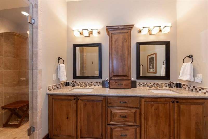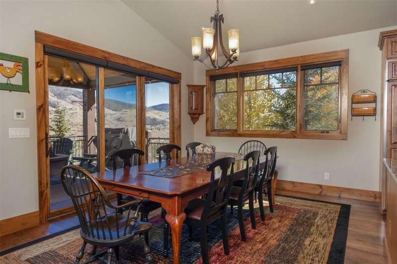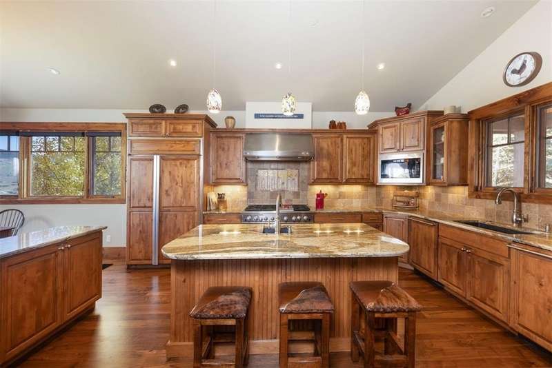 Thoughtfully designed and rich in detail, this custom home in the prestigious Three Peaks neighborhood blends mountain craftsmanship with modern comfort. Set on a desirable downhill lot, it offers true single-level living with no steps between the three-car garage, kitchen, great room, and primary suite. Warm walnut floors and alder cabinetry create an inviting atmosphere, complemented by vaulted ceilings and exposed beams that highlight the home’s architectural character. The kitchen features GE Monogram appliances, dual dishwashers and sinks, and a wine fridge with ice maker. The primary suite includes a washer and dryer for added convenience. Perched above the 9th fairway of the Raven Golf Club, the home enjoys unobstructed views of the Williams Fork Range and Keystone, with no homes below for enhanced privacy. Mature trees line the property, offering natural separation from neighboring homes without impacting the views. The lower level provides a secondary living area and walk-out access to the patio and hot tub, completing this thoughtfully built mountain home.