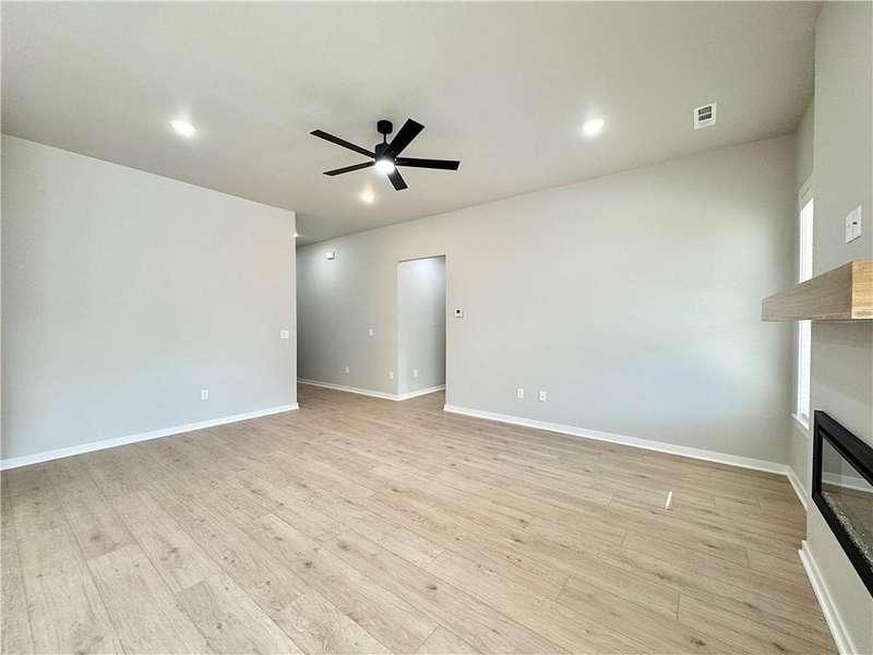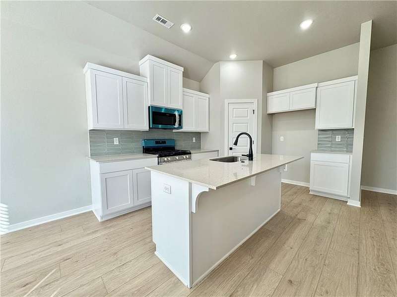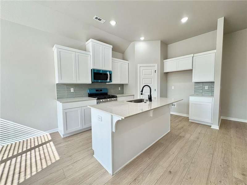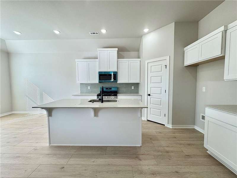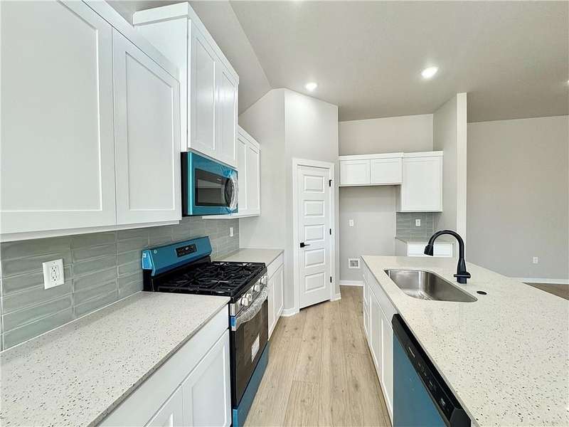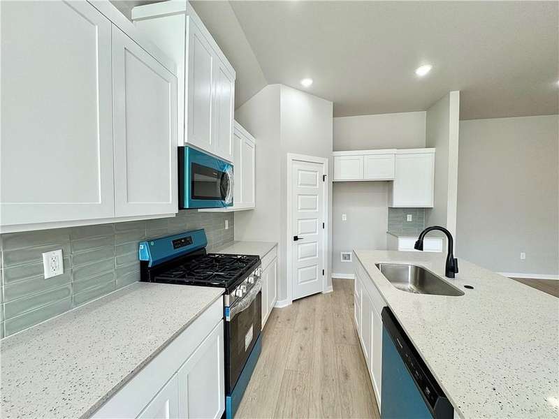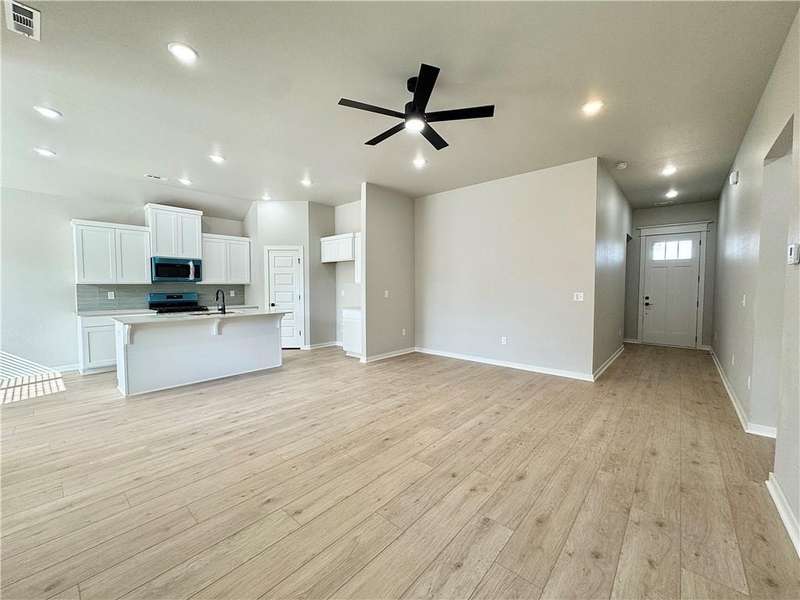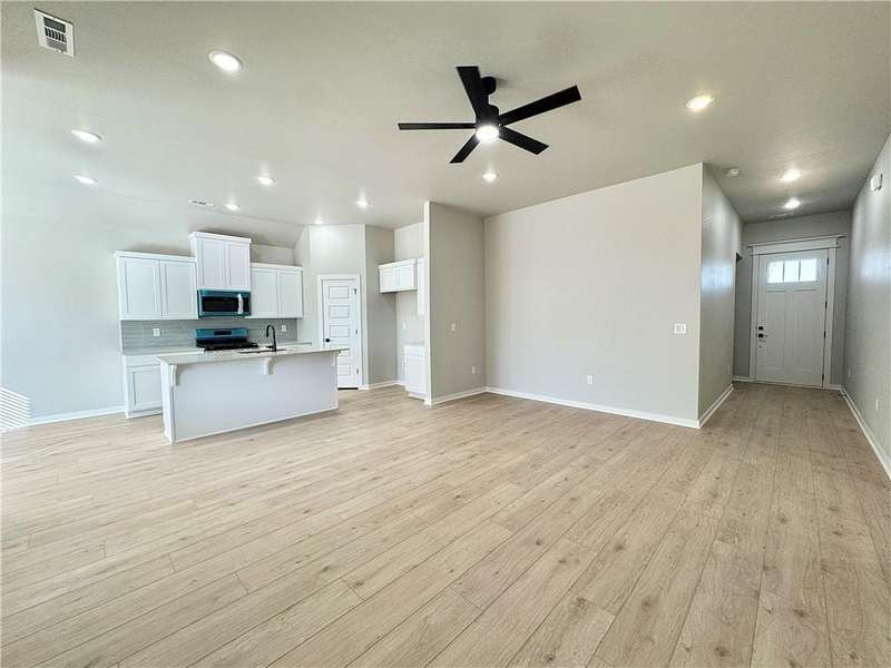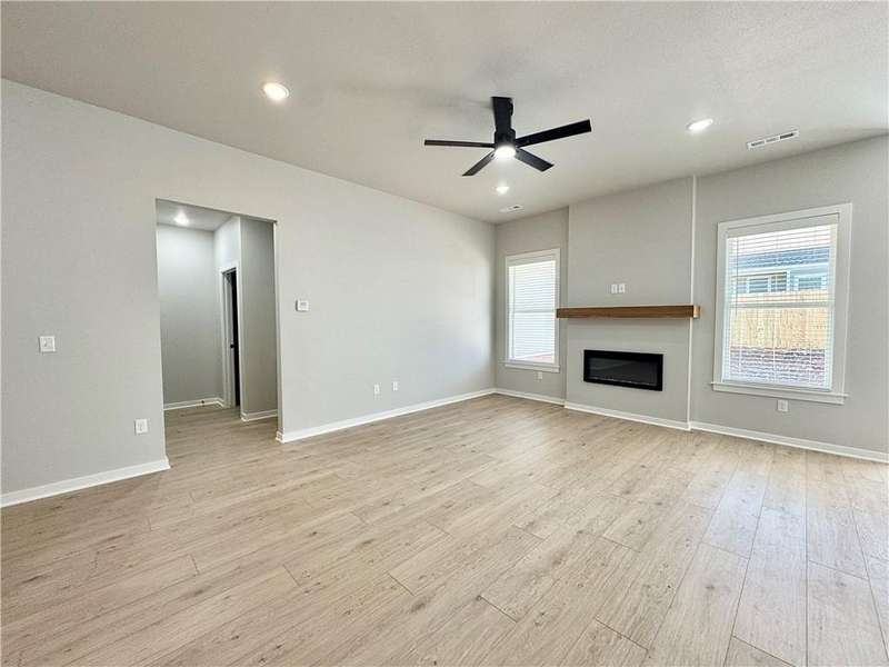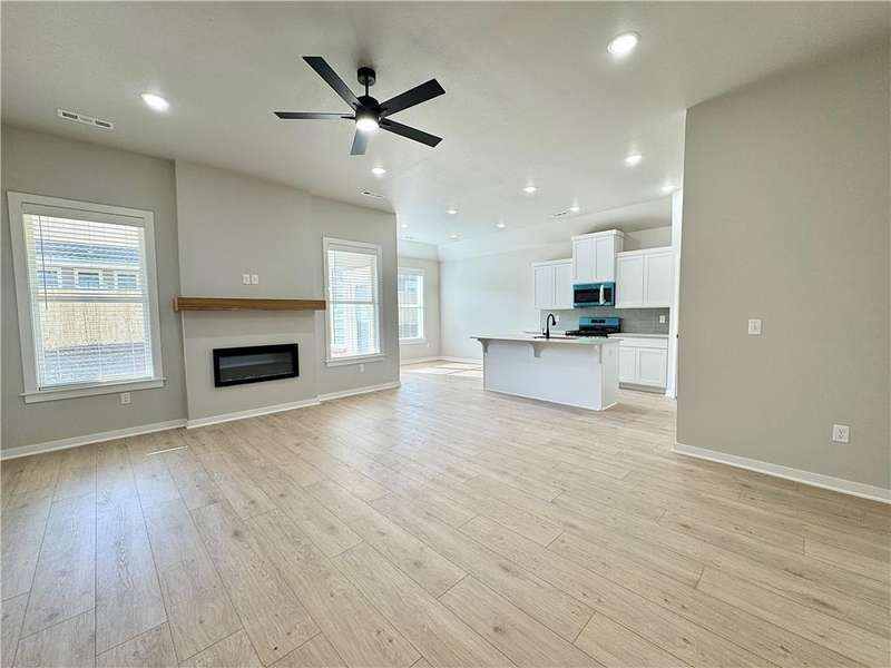 Discover your dream home in the sought-after Osage Hills neighborhood. Benton plan with garage on the left and North facing! 10 ft ceilings in the living/kitchen area, linear electric fireplace in the living, 1 level, LVP flooring throughout the main living areas and primary bedroom, quartz countertops and more. Chef's kitchen boasting frigidaire stainless steel appliances, gas range, pantry, quartz countertops, bar pull handles, large island and gorgeous backsplash. Luxurious primary bedroom features abundant natural light, while the spa-like primary bathroom offers a walk-in shower, double sinks, and spacious walk-in closets. Additional features include three large secondary bedrooms and a separate laundry room. Nestled on a generous lot with covered patio that overlooks the serene sodded, fully fenced backyard. Model home located at 6008 SW Coywolf St- Lot 122.