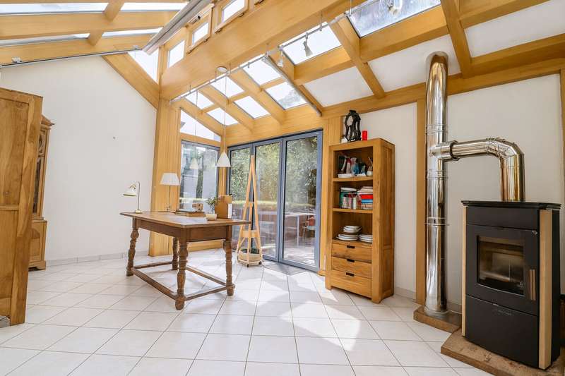 This charming residential building combines historical character with practical living comfort. Originally built in 1887, the property is in a central, yet pleasantly quiet location within a formally designated redevelopment area of Erlangen. The surrounding area is characterized by a mature neighbourhood and easy access to all everyday amenities. With around 240 square meters of living space spread over two floors, the house offers a well thought-out room layout with a variety of possible uses. The inviting living area is characterized by a brick tiled stove from 1987, which creates a cosy atmosphere. The adjoining conservatory, built in 2010, expands the living space and creates a bright retreat. A balcony was also added in 1987 and invites you to linger outdoors. The kitchen is functionally designed and a modern bathroom on the first floor was completely renovated in 2010. The space is complemented by a guest room or study. Upstairs there are two good-sized bedrooms, an additional small room and a second daylight bathroom. Particularly noteworthy is the roof, which was re-roofed in 2020 and will secure the property's substance in the long term. A central heating system ensures a reliable heat supply. The house is in a well-kept condition with contemporary basic fittings and offers space for individual design ideas. The garden invites you to relax, garden or play, while the adjoining garage offers practical storage space. The location is ideal for families, couples or individuals looking for a home with history, potential and excellent connections. Shopping facilities, schools, kindergartens and public transport are all within easy reach, and the city center is just a few minutes away. This house combines tradition with quality of life and offers a rare opportunity to live in an urban yet quiet location. We look forward to your inquiry.