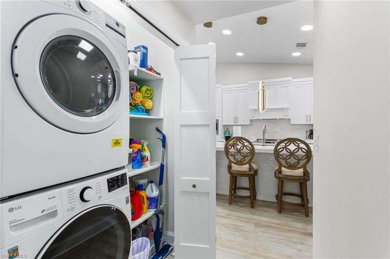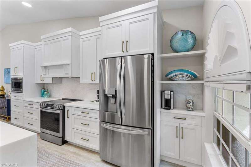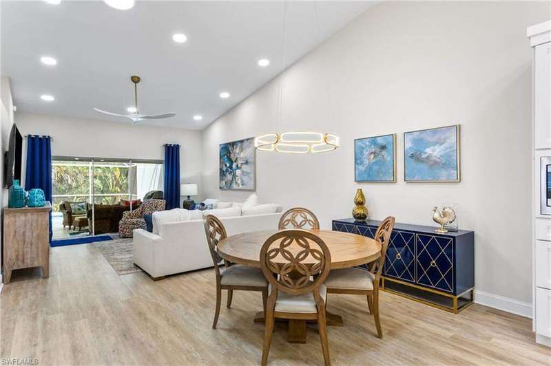 Discover coastal charm and modern comfort in this beautifully refreshed villa nestled within the highly desirable Wiggins Bay neighborhood of North Naples-just minutes from pristine beaches, top-tier shopping, and fine dining. Peace of mind comes standard with a newer roof, impact windows in the master suite, and upgraded HVAC and water heater systems. Inside, you'll be greeted by a sleek, remodeled kitchen featuring stainless appliances, custom cabinetry, and LED lighting, alongside a spa-inspired master suite rich with custom closets and a fully renewed bath. Throughout, fresh Cortec Plus laminate flooring, baseboards, and interior paint lend a light and modern feel, while a stylishly updated guest bathroom and added storage in the guest bedroom and laundry provide practical elegance. Outdoors, your personal retreat awaits with a resurfaced and retiled pool, LED lighting, refreshed pool cage and deck, upgraded "No-See-Um" enclosure, and modern pool equipment-perfect for Florida living. Thoughtful finishing touches like French doors, new ceiling fans, and an enhanced garage complete the picture. Wiggins Bay truly enhances the lifestyle by offering optional membership at the Tarpon Cove Yacht & Racquet Club, featuring private beach shuttles, tennis courts, dining, fitness facilities, and engaging social events for residents who enjoy a more active and connected community. More than just a home-it's an invitation to soothe into the vibrant Naples way of life.