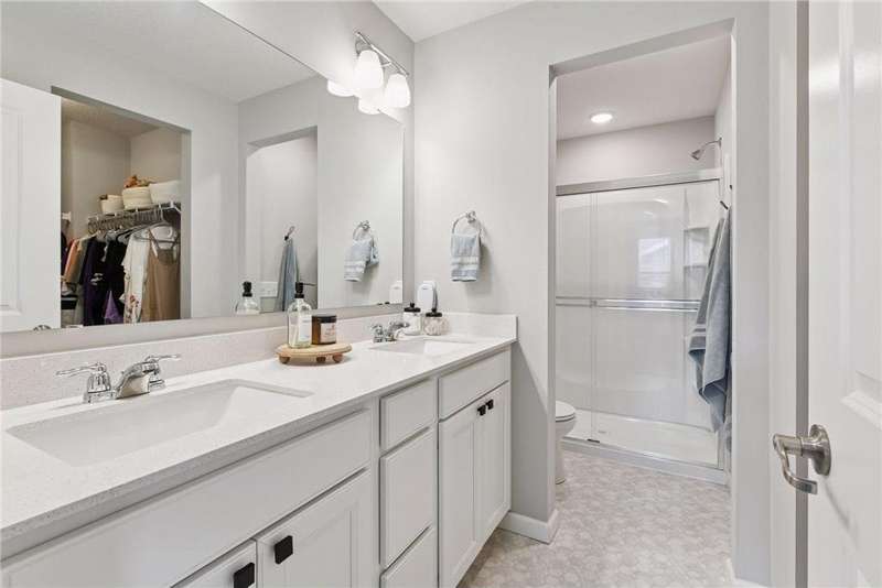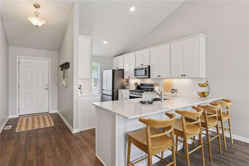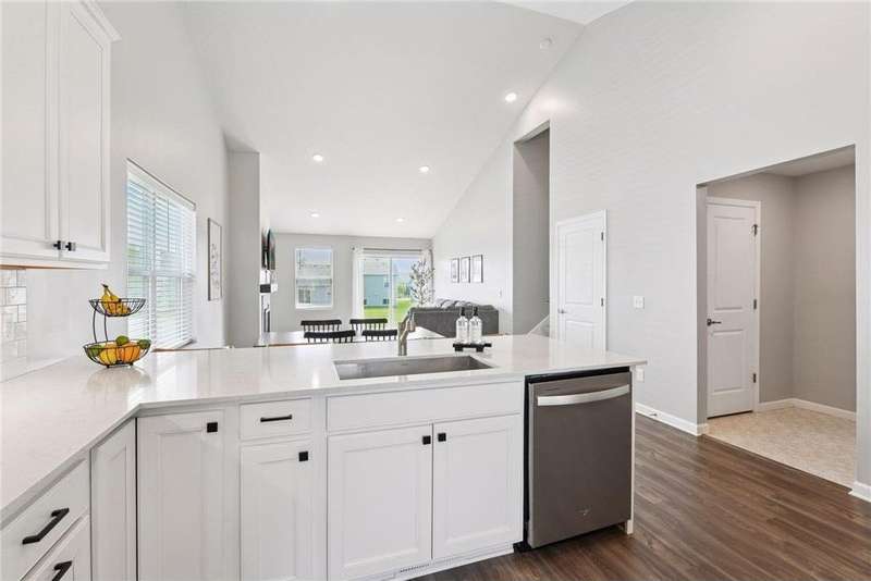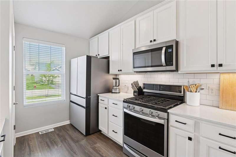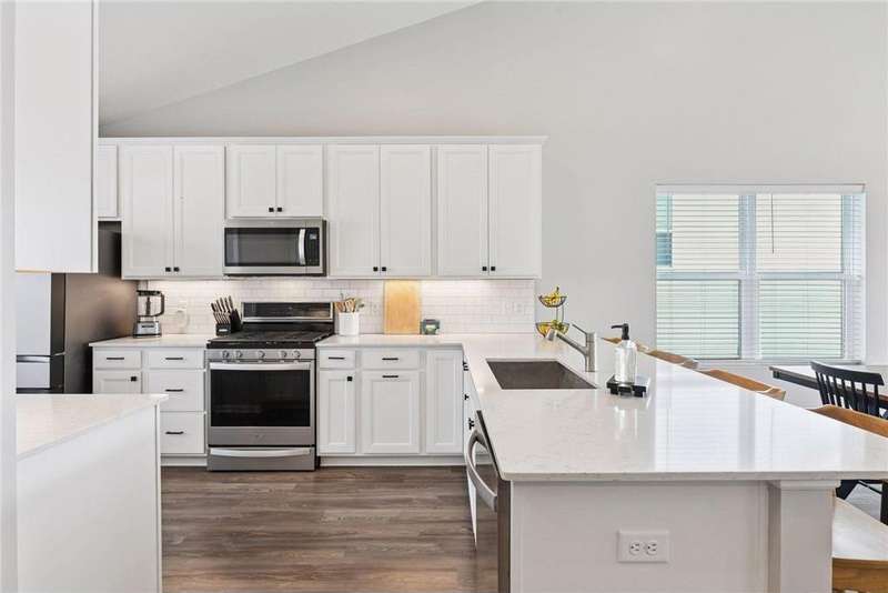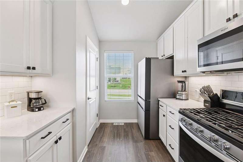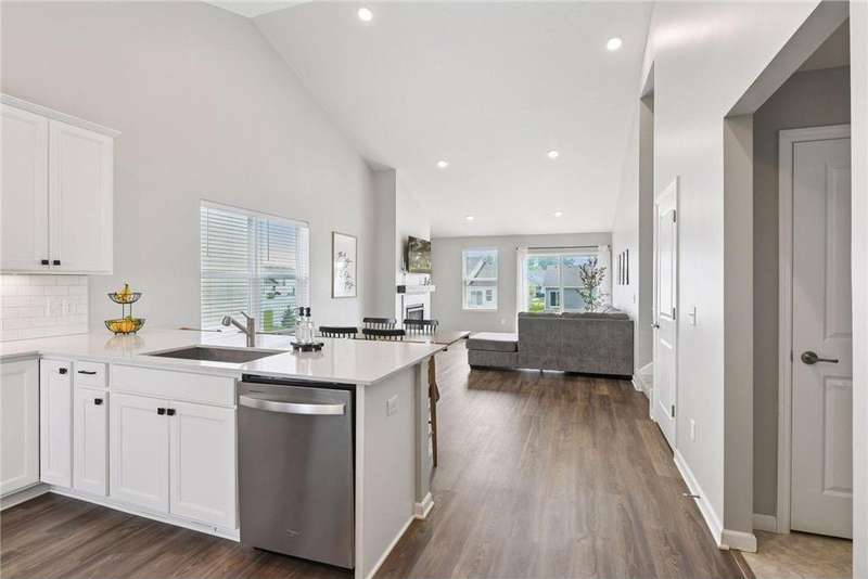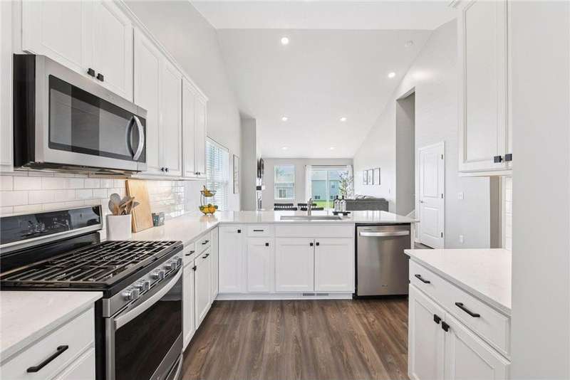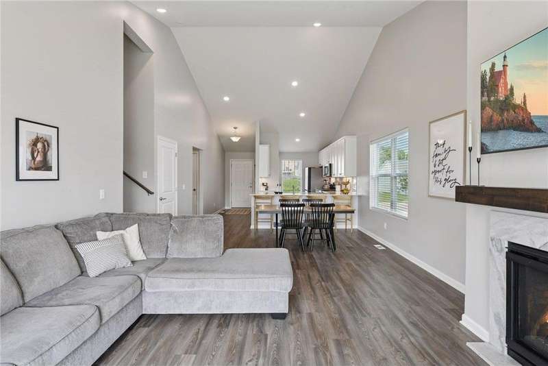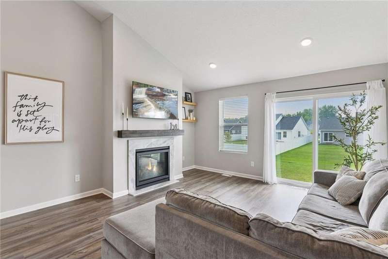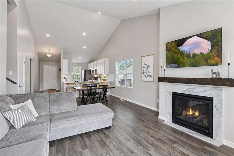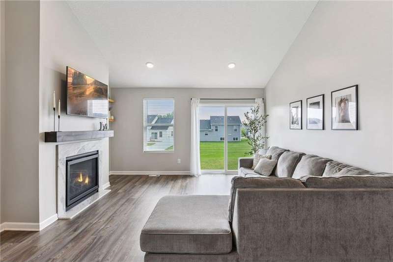 Great alternative to building, and no wait! Loaded with sought-after amenities and boasting a sun-filled main level living area vaulted from front to back. Kitchen features stainless steel appliances, quartz countertops, 42" uppers with under cabinet lighting, tiled backsplash, pantry, and breakfast bar. Main level family room with gas fireplace, custom mantle and sliding glass doors to future deck. Well-designed upper level offers laundry, a full bath, and three bedrooms including an owner's suite with walk-in closet and three-quarter bath with quartz-topped elevated double vanity. Walkout lower level well-suited for expansion and will easily accommodate addition flex space, a fourth bedroom, and a third bath (rough-in in place). Plus, lots of storage in large crawl space with concrete floors. Extras include a maintenance-free exterior, irrigation system, and gutters.