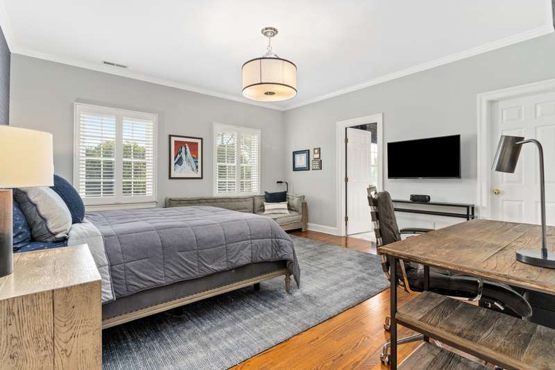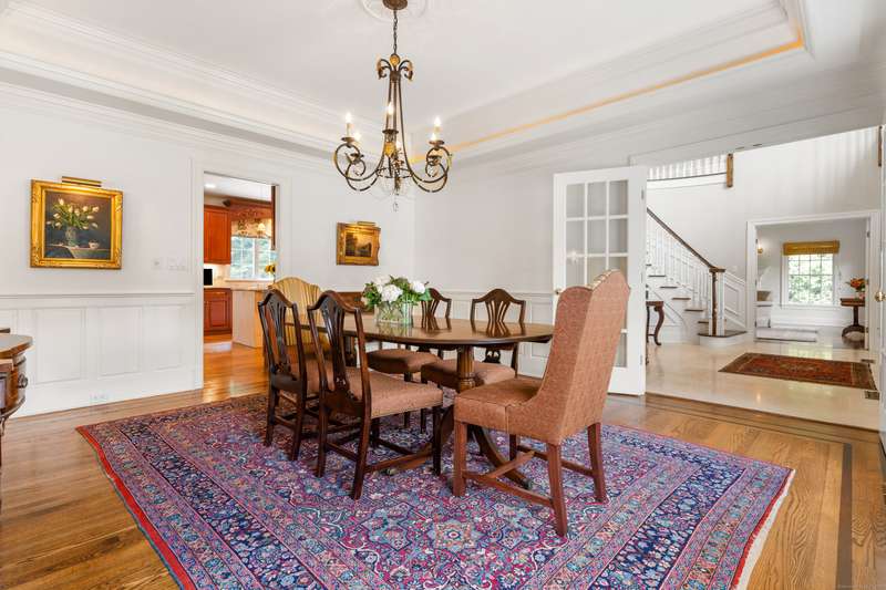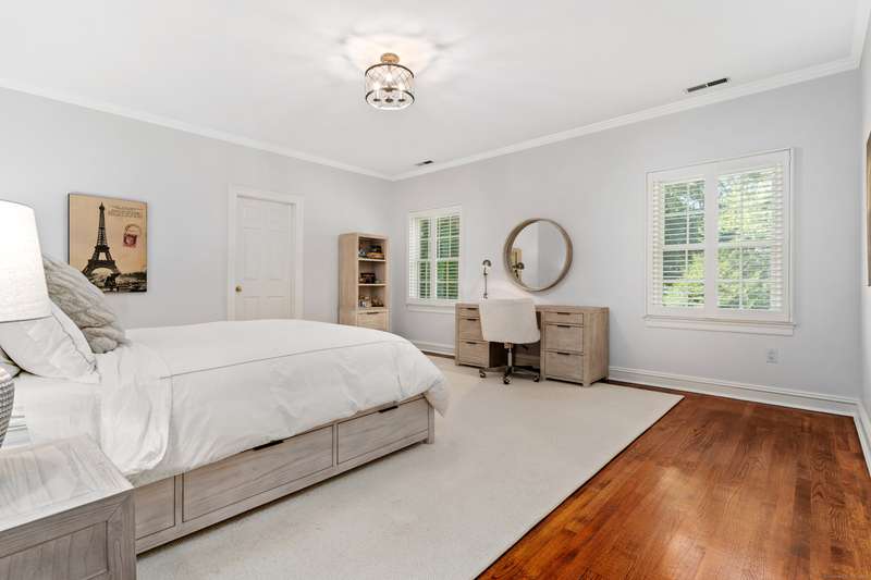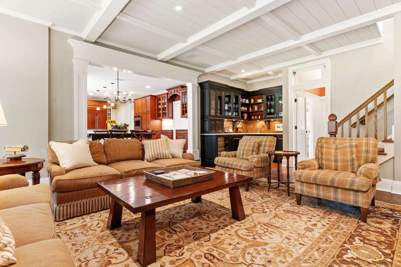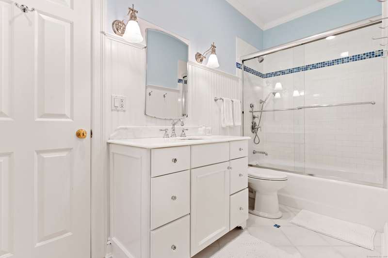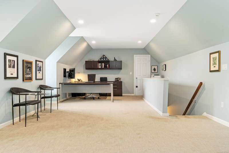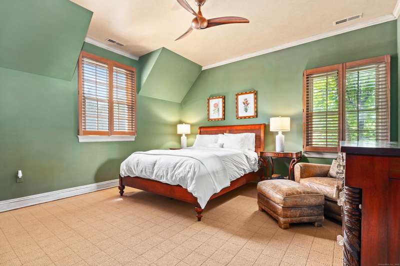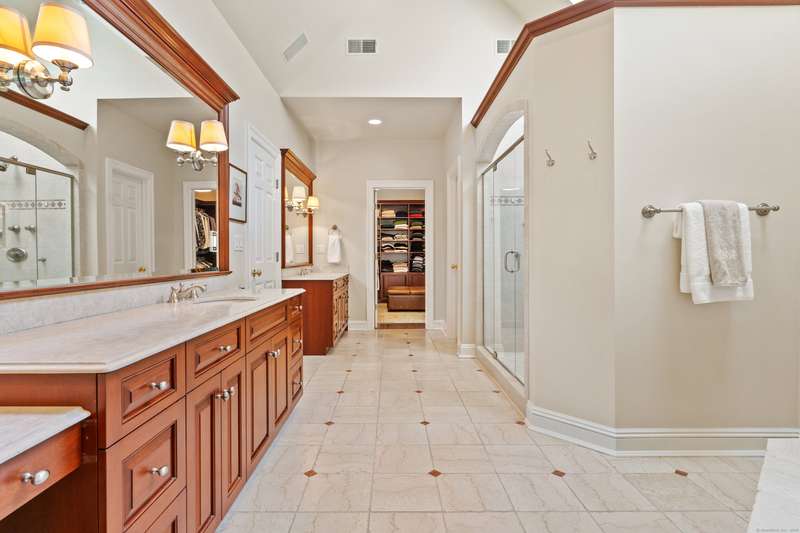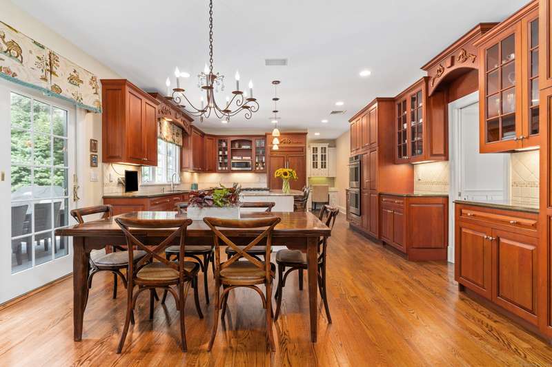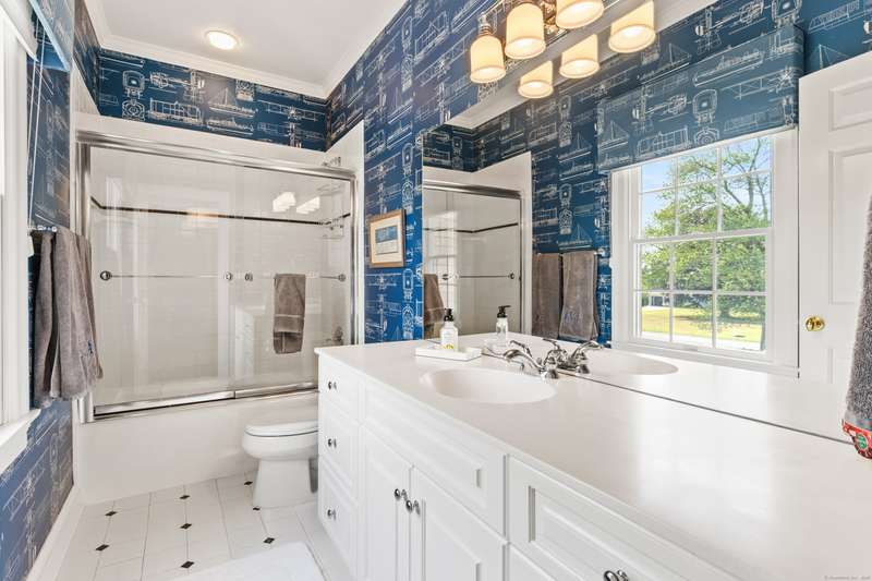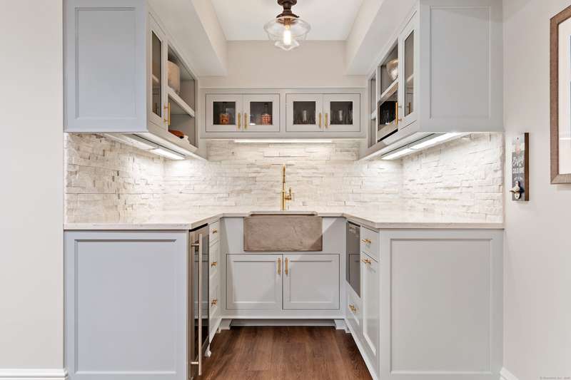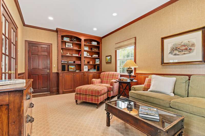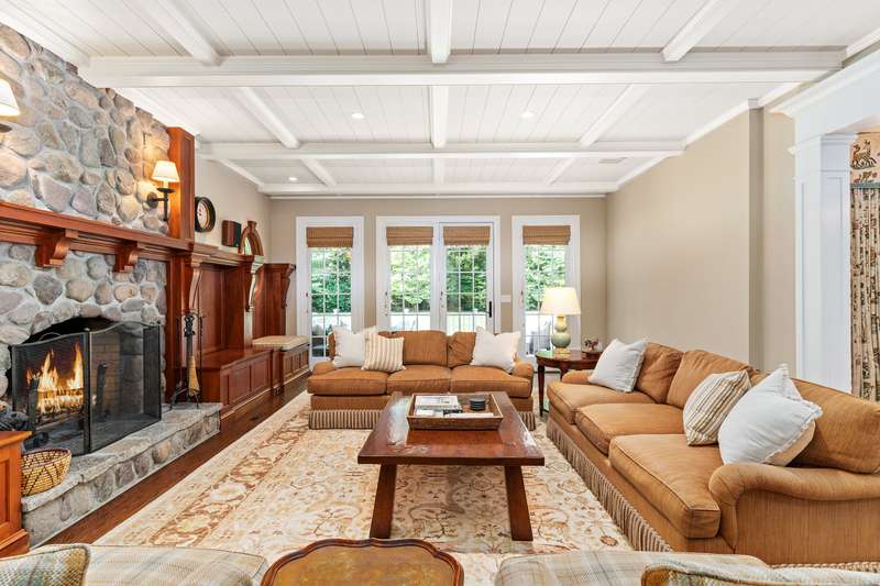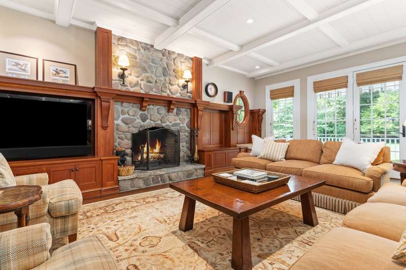 This stately 5 BR shingle style colonial with over 7000 sf in favored Sturges Ridge neighborhood is a memory-making treasure! With a level backyard that plays host to games, gardens and gatherings including a lobster bake, birthday parties with water slides, badminton, croquet, the view to witness joyful connection is endless. The home is a haven of warmth and sophistication, and offers large spaces for big groups and special smaller rooms for cozy togetherness. Have a crowd help you prepare a meal in the kitchen while the game is on in the handsome Family Room with rich coffered ceiling, stone fireplace and fully outfitted wet bar. The newly remodeled lower level entertainment center has a deluxe kitchenette with stone backsplash and quartzite countertop, dishwasher, fridge and sink, as well as plenty of storage in one of the cleanest basements you'll ever see. Large Primary BR Suite includes a gas fireplace, walk-in closet, full bath with double vanities and separate tub. All bedroom