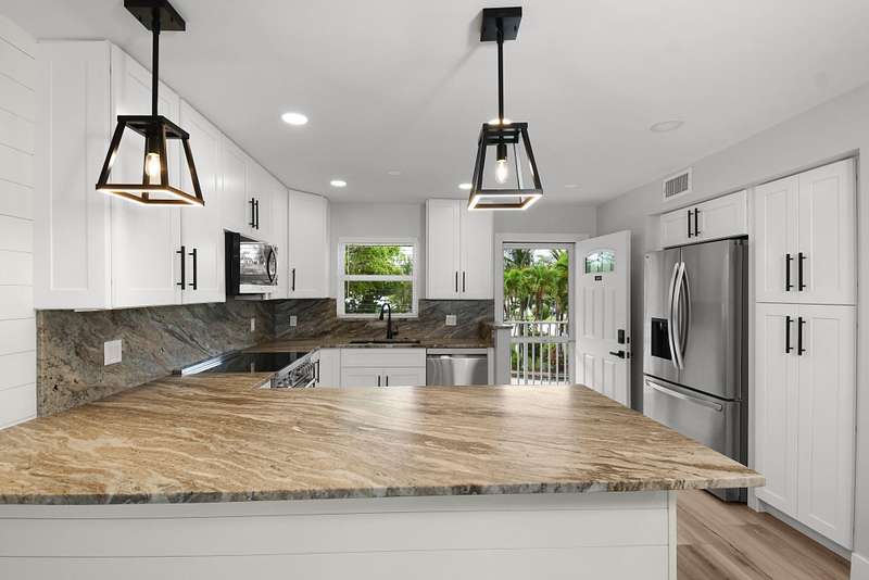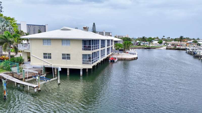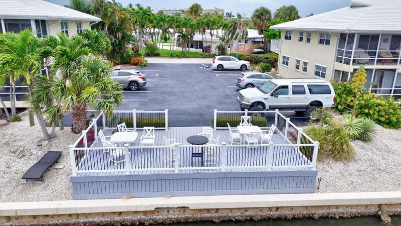 Beautiful St. Lucie Riverfront condo on Hutchinson Island in Jensen Beach. RARE - COMES WITH DEEDED DOCK. Double wide dock w/ NEW pilings, electric & lift. 20,000lb capacity. Fits 10.9 W x 31 L boat. Must see top floor newly renovated condo! Sunset views from balcony, living room, main bedroom & Kitchen. Sunrise views from kitchen & 2nd bedroom. Room for King size bed. All electric, plumbing, bathrooms, ceilings, walls, Impact doors & windows, flooring, kitchen have been renovated and are brand new. Luxury leather granite counter tops, Quartz kitchen sink, Italian stove, soft close cabinetry, Washer/Dryer & more. Come spend time playing in the Ocean at your deeded beach & tiki hut. Close to restaurants, shops & beaches. Pet allowed. Rented Jan-May 2026. Rental income to new owner.
