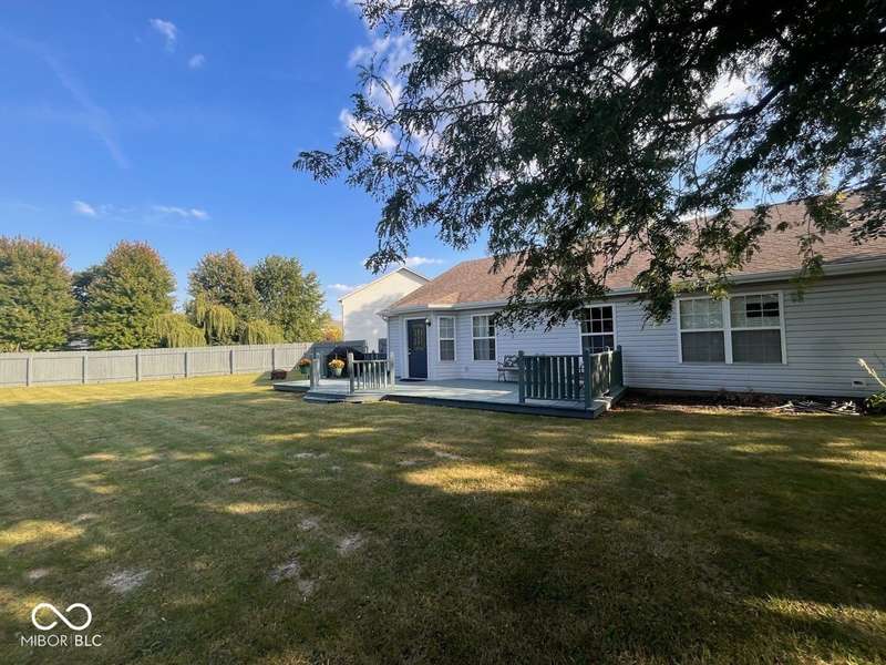 Welcome to this Fishers 4 BR/2BA Ranch with Bonus Room. Features open airy, vaulted ceiling, fresh paint inside and out, laminate floors in the main living space, and tiled bathrooms. The kitchen is light and bright with stainless steel appliances and drinking water system included. The split bedroom floorplan is perfect for those needing a home office. Outside, the deck offers over 30 ft. of entertainment area. The fully fenced .34 acre yard has space for a kids' play set, fire pit, and room for the family dog. The neighborhood pool, park and other amenities are included in your annual dues. Plantana is a close-knit community with regularly scheduled neighborhood activities. Centrally located with easy access to I-37. Close to Hamilton Towne Center, The Nickel Plate, Fishers Event Center, and Fishers Community Center (opening in November 2025). Welcome home!