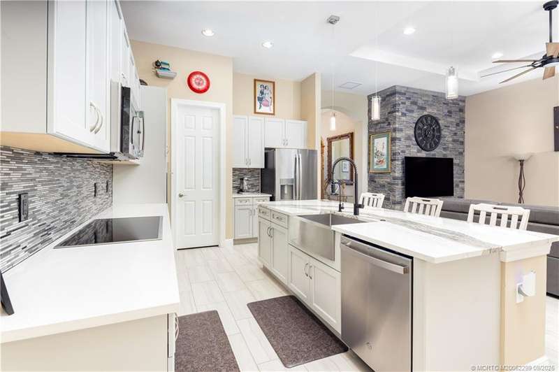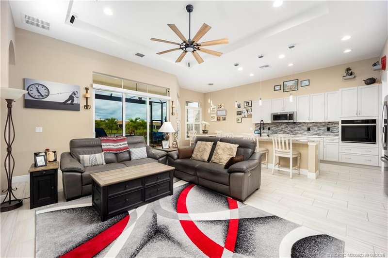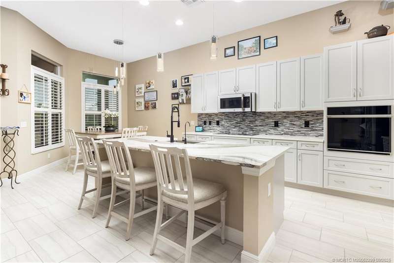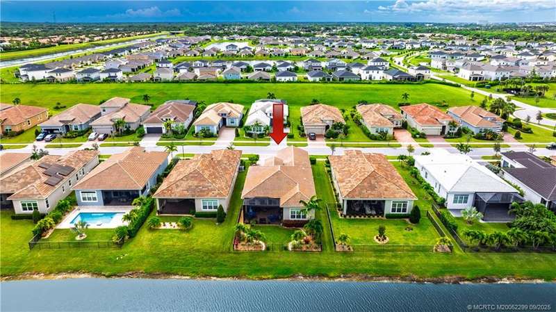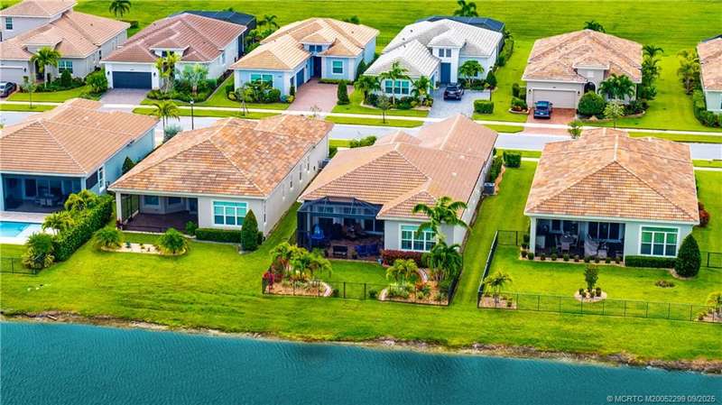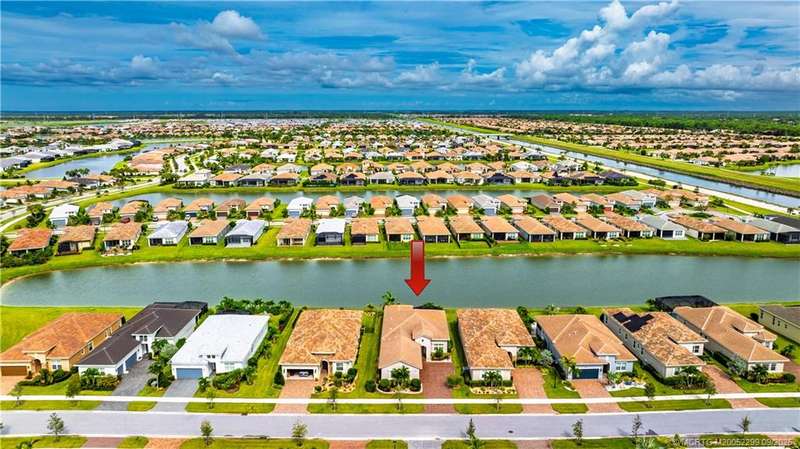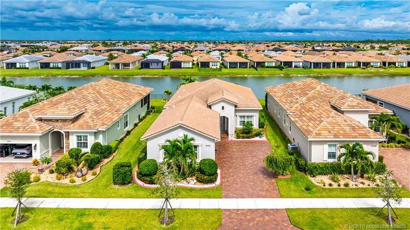 LAKE VIEWS!! W?lc?me t? the ?l??sa floorplan in th? de?irable PGA Cresswind Verano community. This 4-bedroom, 2.5-bath CBS home with a hurricane-rated 3-car epoxy-finished garage offers style and peace of mind. Features include impact windows, impact front door, porcelain tile, plantation shutters, custom lighting, Ecobee smart thermostat, and whole-house surge protection. The gourmet kitchen w/ quartz countertops, large island, GE Monogram appliances including Advantium oven, farmhouse sink with reverse osmosis, and custom pantry. The owner’s suite provides dual vanities, frameless shower, and soaking tub. Outdoor living shines with motorized shades on patio doors, screened lanai with pavers, serene lake views, extensive curbing, custom landscaping, lighting, and flood lamps. Conveniently located with easy golf cart access to the PGA Village Golf Club. Verano is an active community offering pickleball, bocce ball, indoor lap pool, resort-style pool, and a ton of year-round activities