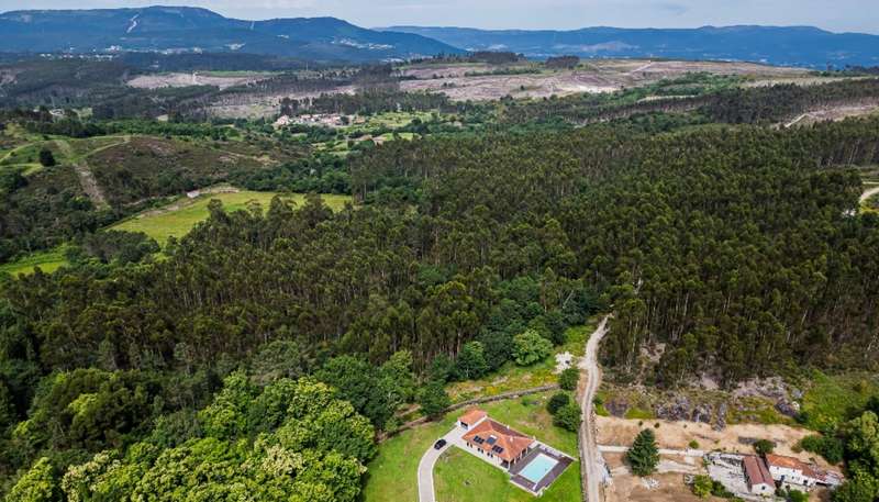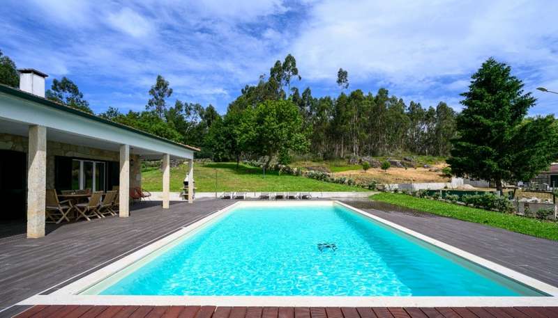 In the green heart of Paredes de Coura, where tranquillity and nature meet in perfect harmony, stands this charming 3-bedroom villa - a true haven for those seeking quality of life, comfort and authenticity. Completely renovated with meticulous care in the finishes, this villa combines the rustic charm of traditional architecture with the sophistication of a contemporary interior. With generous and well-distributed areas, each room shows special attention to natural light, which enters in abundance and enhances every space. The living room, cozy and elegant, offers a perfect setting for moments of leisure with family or friends. The kitchen, functional and modern, invites you to be inspired by homemade recipes, while the three bedrooms provide the ideal comfort for relaxing to the sound of the serenity that only the countryside can offer. Outside, a large garden space surrounds the villa, ideal for those who dream of afternoons outdoors, dinners under the stars or simply enjoying the bucolic surroundings. A real privilege for those who value quality of life. This property is perfect for permanent residence, as well as a vacation home or tourist investment, benefiting from the growing demand for the region, known for its natural beauty, hiking trails and tranquility. CHARACTERISTICS: Plot Area: 3 915 m2 | 42 139 sq ft Deployment Area: 218 m2 | 2 341 sq ft Building Area: 218 m2 | 2 341 sq ft Bedrooms: 3 Bathrooms: 3 Garage: 1 Energy efficiency: B