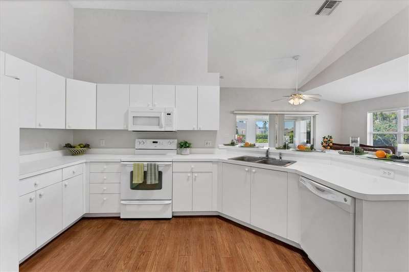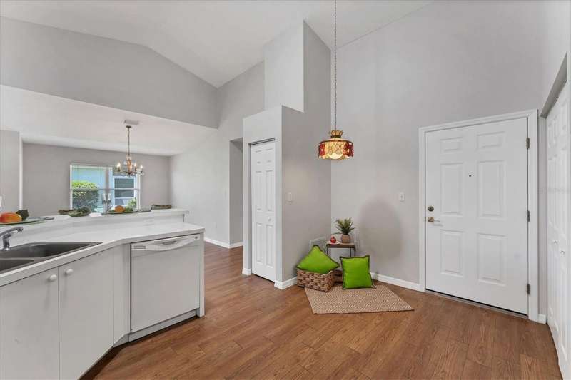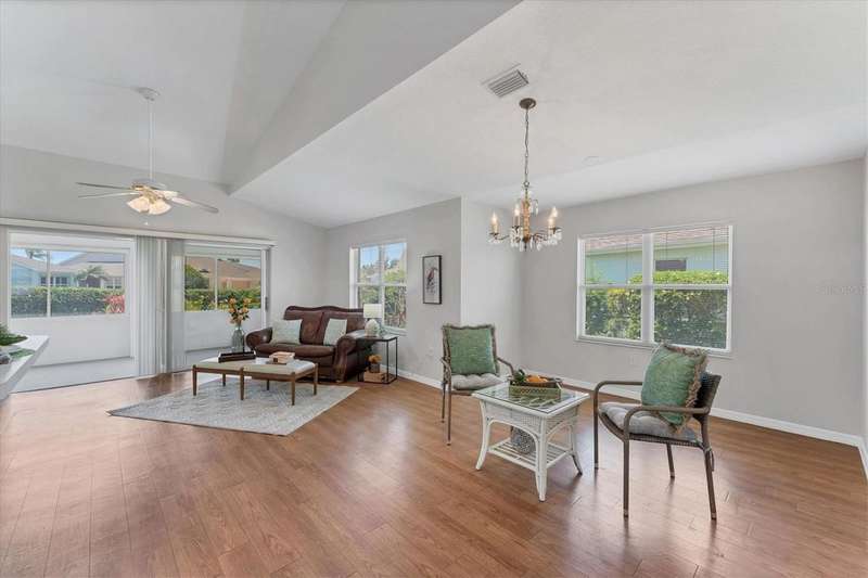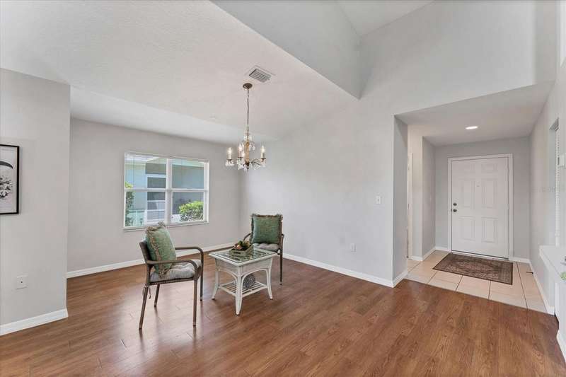 Priced to sell! Make this delightful Bay Estates North 2/2 villa your private oasis! Nestled in a serene, tree-shaded setting, this beautifully updated, all ages condo offers both comfort and convenience-including the sought-after two-car garage. The entire interior has been freshly painted in a soft, neutral palette-ceilings, walls, doors, and trim-creating a bright and inviting atmosphere throughout. The home features a desirable split-bedroom floorplan and an open-concept living space, perfect for both relaxing and entertaining. The vaulted ceilings and open layout seamlessly connect the kitchen, living, and dining areas, with a breakfast bar that adds functionality and charm. Recent updates include a newer A/C system (2024) and new carpet throughout, making the home truly move-in ready. An enclosed porch extends your living space and invites you to enjoy the tranquil surroundings year-round. A dedicated foyer adds a welcoming touch, and a washer and dryer (purchased new in 2023) are included for added convenience. Ownership includes cable and internet services, lawn care, and the building exterior. The community offers a very scenic locale, and is located within Terra Ceia Bay Club in Palmetto, Bay Estates North residents can elect to enjoy access to golf, a full-service restaurant, pool, pickleball, and tennis-all open to the public with a variety of memberships. The condo's Palmetto location is a short trip to the restaurants and excitement of St. Petersburg, and a quick ride to the gulf beaches of Anna Maria Island as well.
