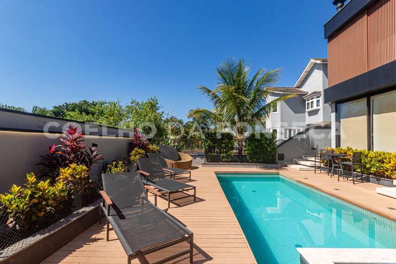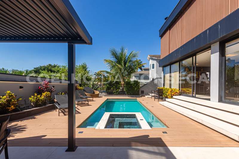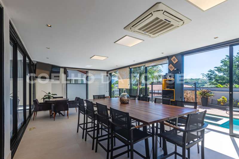 Casa no condomínio ALPHAVILLE 11, com 450m² área construída, 4 dormitório(s), 4 suíte(s), 6 vaga(s), 5 banheiro(s), piscina, escritório, sauna, depósito, heliponto, rua sem saída, ar condicionado, dep. de empregados, reformado (a), varanda, aquecedor solar.