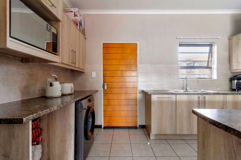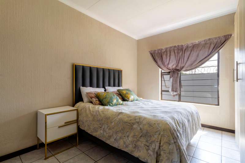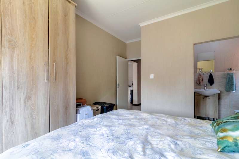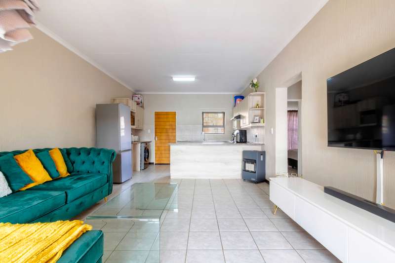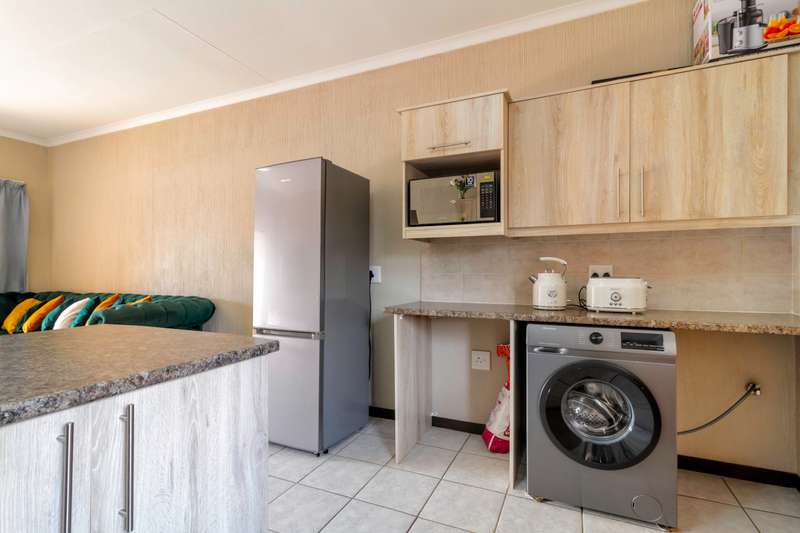 This modern 2-bedroom simplex in Wilgeheuwel offers both style and functionality. The kitchen is thoughtfully designed with melamine tops, with ample storage space. It is equipped with an electric hob, under-counter oven, extractor fan, and accommodates two large appliances plus a double-door fridge. The open-plan living area creates a welcoming space that leads onto a closed patio ideal for entertaining and relaxing. Small garden. The main bedroom fits a queen-sized bed and includes an en-suite bathroom with a shower, while the second bedroom comfortably accommodates a double bed. The shared bathroom features a bathtub for unwinding after a long day. The simplex comes with one dedicated carport and plenty of guest parking for added convenience. It is fibre-ready, ensuring high-speed internet access and pre-paid electricity. Situated within a secure complex with access control, electric fencing, and 24-hour security, the property offers peace of mind and safety. Set amidst lush greenery, the complex boasts immaculate gardens and spacious play areas for children. This simplex is perfect for first-time buyers, investors, or anyone looking for a harmonious blend of modern living and serene surroundings. Don’t miss out on this remarkable opportunity—schedule your viewing today!