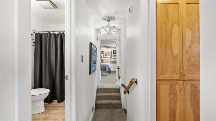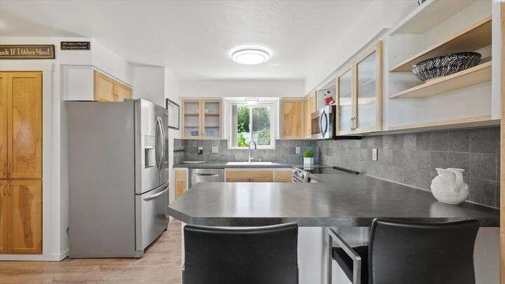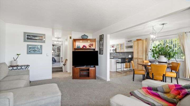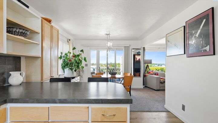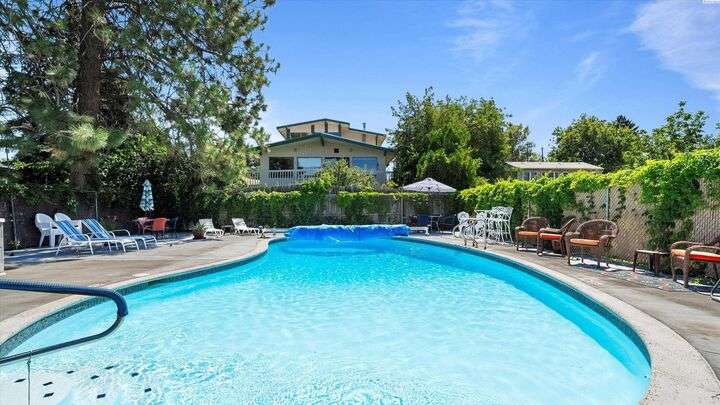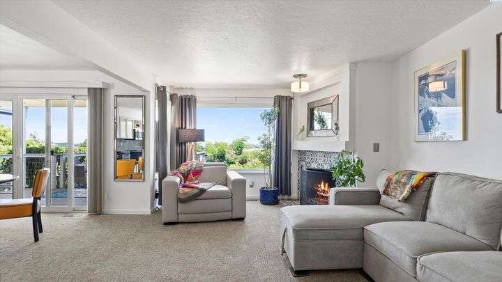 MLS# 286225 This beautifully updated 3-bedroom, 2-bathroom townhouse blends comfort, style, and panoramic river views in a truly special setting. Ideally tucked away at the back of the neighborhood for added privacy, the home is situated directly across from the community pool and features an oversized lot with lush landscaping, a garden area, and established flower beds. Inside, you’ll immediately feel the thoughtful design and care throughout. The main floor includes two bedrooms and a remodeled bathroom featuring a custom tile shower and designer finishes. One bedroom offers private access to the covered patio, while the other boasts a large picture window capturing views of the Columbia River. Upstairs, the spacious living room—open to the dining area and rear deck—features a cozy wood-burning fireplace, creating the perfect space for relaxing or entertaining. The fully remodeled kitchen shines with modern cabinetry, sleek countertops, and contemporary finishes. Also on the main level is a third generously sized bedroom with a walk-in closet. Enjoy multiple outdoor living areas, including a private upper deck with breathtaking views of the Columbia River—perfect for morning coffee, sunset dinners, or catching the boat races right from home. A covered patio below offers year-round outdoor enjoyment and room for gatherings.Additional features include fresh interior and exterior paint, covered carport with extra storage, bright, well-designed floor plan and excellent location near community amenities. This rare offering combines updated living with unbeatable views and outdoor space. A true retreat in a highly desirable location—schedule your showing today!