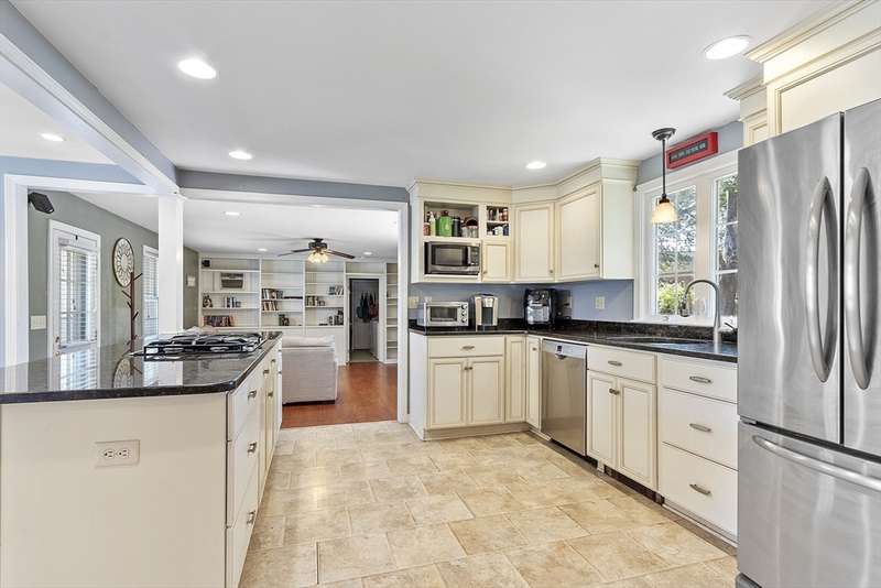 Welcome to this move-in ready 4-bed, 2.5-bath Garrison Colonial nestled on a quiet side street in a desirable neighborhood. Featuring a stylish white kitchen w/granite, SS appliances, island, pantry and eat-in area that opens to a cozy family room w/built-ins. The large front-to-back living room offers refinished hardwood floors and fireplace. The oversized primary suite w/addtl exterior access includes a walk-in closet, private en suite w/soaking tub and shower, plus access to a 300 sq ft bonus space for future expansion. Additional 3 bedrooms, home office and full bath complete the spacious 2nd floor. Enjoy first-floor laundry, a partially finished basement w/fireplace and an oversized tall 2-car garage w/extra storage. Updates include new heating system (2023), hot water heater (2024), and fresh paint. The large private, fenced, flat yard is perfect for gatherings and play. Just minutes to Rt 495, downtown, commuter rail & NH shopping. Flexible closing available don t miss this one!
