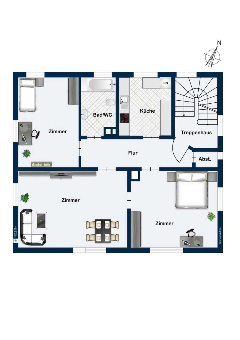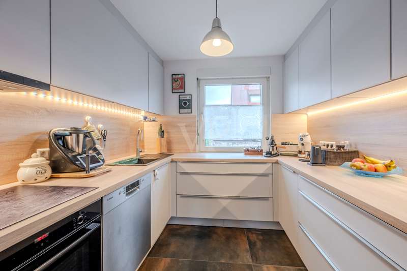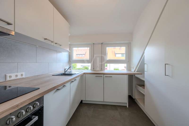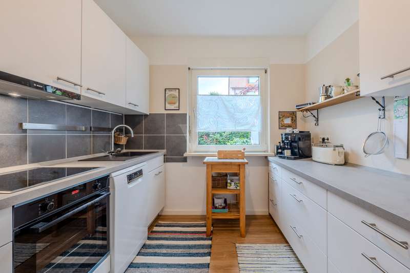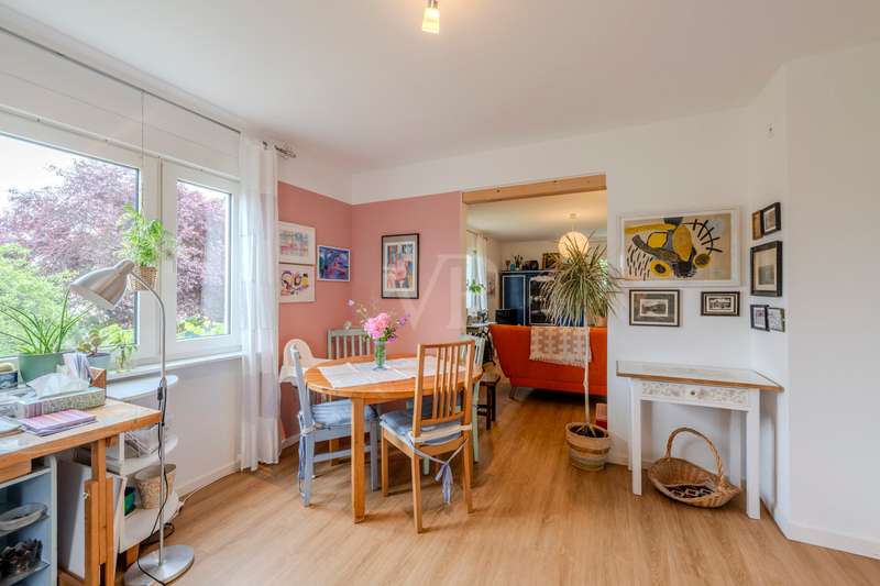 A charming three-family house from 1948 is for sale, which has been continuously renovated to offer modern living comfort. The house is located in a quiet area of Stuttgart in the Stammheim district. The property has three separate residential units and a spacious garden with a pond, terrace and garden shed, as well as a single garage on the street side. The three existing residential units are divided as follows: First floor (approx. 74 m² living space): This apartment comprises 3.5 rooms and offers access to the terraces and the garden area with pond and garden shed via the basement. Second floor (approx. 72 m² living space): On the upper floor you will find another 3.5-room apartment with an almost identical floor plan with a balcony, which also offers a view of the garden. Top floor (approx. 56 m² living space): The top floor offers 3 rooms and is currently occupied by a family together with the unit on the upper floor. Basement/garden level (approx. 68 m² usable area): In addition to several storage rooms and a vaulted cellar, the basement also has access to the garden. The house has been continuously modernized over the years and therefore has excellent energy efficiency and contemporary fittings. A detailed list of the measures taken can be found under the heading "Description of fixtures and fittings". Conclusion: Thanks to its flexible room layout and extensive renovations, this three-family home offers numerous potential uses - whether as a home for generations, as an investment or for owner-occupied living space. The well-kept property in a green location, combined with a spacious garden and modern features, is an ideal home for families or a lucrative investment for capital investors.