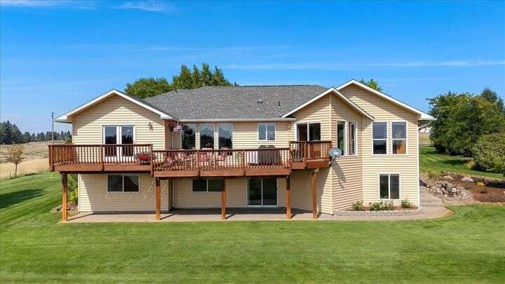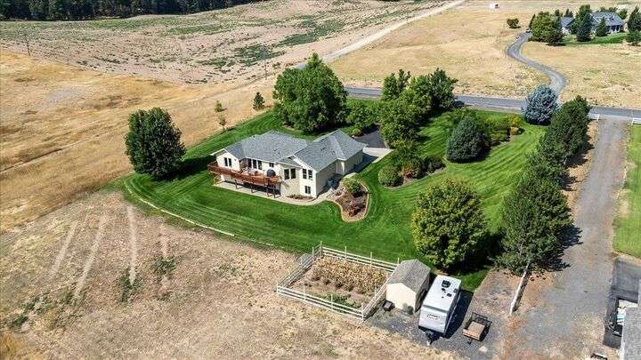 Magical pastoral views await from this beautifully maintained 1-owner custom home. Located on nearly 10 close-in acres, this nicely appointed rancher offers quiet + privacy, while providing quick paved-road access to shopping, restaurants + Mead schools. The spaces are bright, warm + welcoming and, from the moment you enter, you will know you are in a home that has been loved. Features include an open, island kitchen; main floor primary suite w/full bath + walk-in closet; main floor utilities; a fully finished walk-out lower level complete w/wet bar, family room + workshop space; and ample storage throughout. Outside, enjoy a beautiful fenced garden area w/large garden shed, RV parking + landscaped yard w/a variety of mature trees + perennial plantings. Last tested at over 20 gpm, the well, complete with reverse osmosis, provides ample water for household + irrigation purposes. Forced air gas heating, central A/C + designated generator transfer switch ensure year-round comfort.