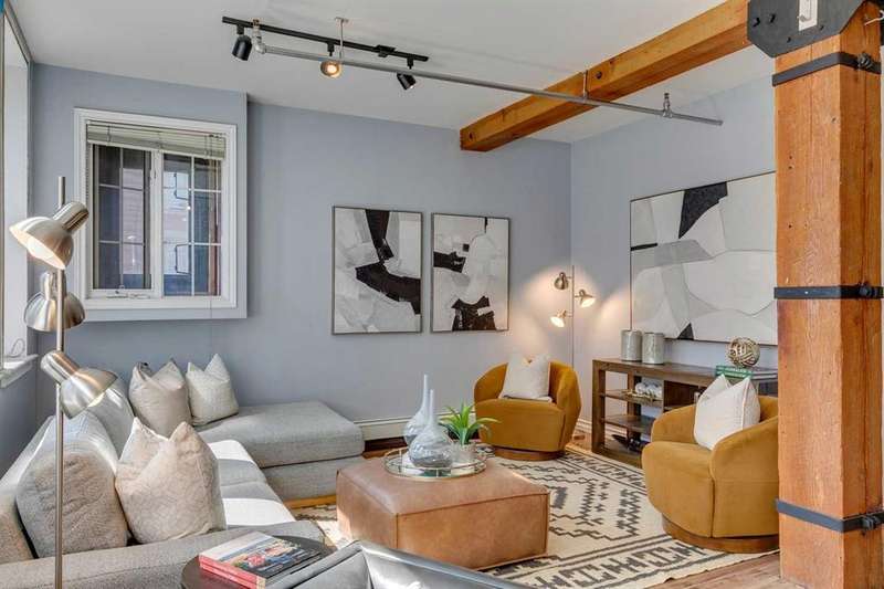 Nestled in the heart of Calgary's Beltline, this extraordinary red brick loft offers a rare opportunity to own a piece of the city’s rich history. Constructed in 1912 for the Imperial Tobacco Company by the renowned A. Dale and Associates, the architectural firm behind the iconic Calgary Tower, this building underwent a stunning conversion to lofts in 1995. For the first time ever, these timeless residences are available for sale, blending historical charm with modern sophistication. Offering over 1,100 SqFt, this expansive loft exudes character with its original brick walls, exposed wood beams, and soaring ceilings. A wall of windows floods the space with natural light, creating a warm and inviting ambiance reminiscent of a classic New York City loft. The open-concept layout is thoughtfully designed, offering endless possibilities for both living and working. A private den provides the perfect space for a home or business office, while two generously sized bedrooms are complemented by a five-piece Jack and Jill bathroom plus there is an additional three-piece bathroom. The galley-style kitchen features maple cabinetry with under mount lighting, stainless steel appliances, and a seamless flow into the dining and living areas. Whether you envision this space as your personal sanctuary or a dynamic live/work environment, the possibilities are as limitless as your imagination. Beyond the loft itself, the building offers an array of amenities, including a gym, a games room, and a rooftop patio with breathtaking views of the Downtown Skyline. An above-ground parking spot is also included, ensuring convenience in this vibrant urban setting. This is more than a home; it’s a lifestyle. A rare blend of history, elegance, and modernity, this loft is a once-in-a-lifetime opportunity to own a truly unique piece of Calgary’s architectural heritage.