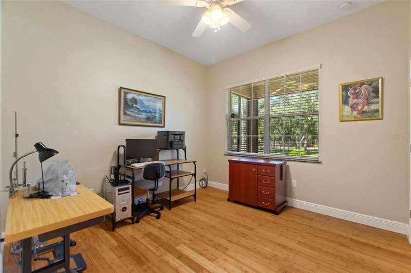 Welcome to your own slice of peaceful Florida living! This custom-built 3-bedroom, 2-bathroom home is perfectly situated on a fully fenced and gated 1.2-acre lot, offering privacy, space, and functionality for those who value both comfort and versatility. With a thoughtful split-bedroom layout, an open-concept floor plan, and multiple custom upgrades throughout, this property is a rare find.As you enter the home, you're welcomed by bamboo flooring that flows through the main living areas, creating a warm and inviting atmosphere. The spacious living room opens to the formal dining room, breakfast nook and an expansive kitchen featuring granite countertops, custom cabinetry, and an oversized eating area. Whether you're entertaining guests or enjoying a quiet evening at home, this layout offers both flow and flexibility.The master suite is a true retreat, complete with a large walk-in closet featuring custom shelving, bamboo flooring, and a luxurious en-suite bathroom with dual sinks, a granite-topped vanity, a jetted Jacuzzi tub, and a separate walk-in shower. The additional bedrooms offer versatile space, ideal for family, guests, or a dedicated home office. Bedroom 2 also features bamboo flooring, while Bedroom 3 is finished with durable wood laminate. The kitchen and dining room are finished with oversized tile flooring for style and easy maintenance.Step through the French doors into the expansive screened-in back porch-perfect for relaxing in the Florida breeze or enjoying your morning coffee. Just beyond is your private backyard oasis, complete with views of lush greenery and mature fruit trees, including almond, tangelo, Meyer lemon, guava, avocado, and tropical additions like lemongrass, pineapple, and yuca.The property features multiple functional outbuildings to suit a variety of needs. The oversized 30x40 detached garage/workshop is ideal for hobbyists or professionals, complete with a separate electrical panel and overhead door. This unfinished RV garage provides extra storage and includes a half bathroom-offering exciting potential for future use. The attached side-entry 2-car garage boasts an epoxy-like coated floor and a massive 20x25 open storage loft above, perfect for conversion into a studio, guest suite, or additional storage.Additional highlights include a new HVAC system installed in May 2025, a tankless water heater (installed approximately 2020 per seller), an outdoor shower, and a light pole on the property for added nighttime visibility. The entire property is fenced and secured with an automatic gate for peace of mind.Located in a tranquil area of large homesites with the charm of Old Florida, this home is just minutes from historic sites such as the Richloam General Store and Post Office. If you're looking for a well-maintained, move-in ready home that offers space, utility, and a connection to nature, this is the one you've been waiting for!
