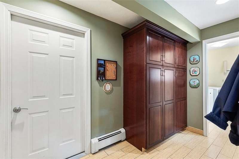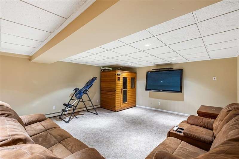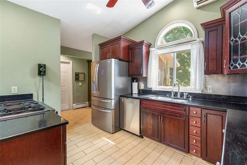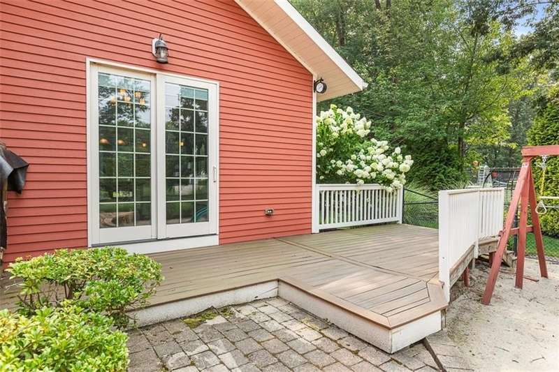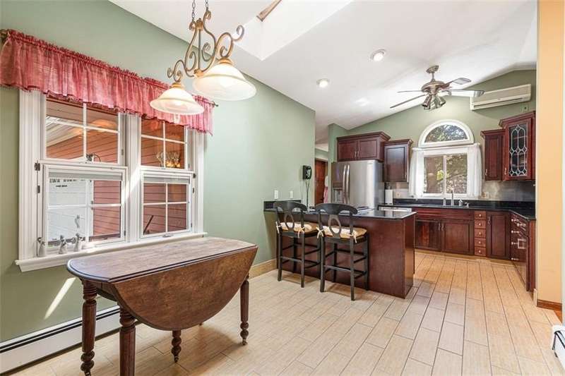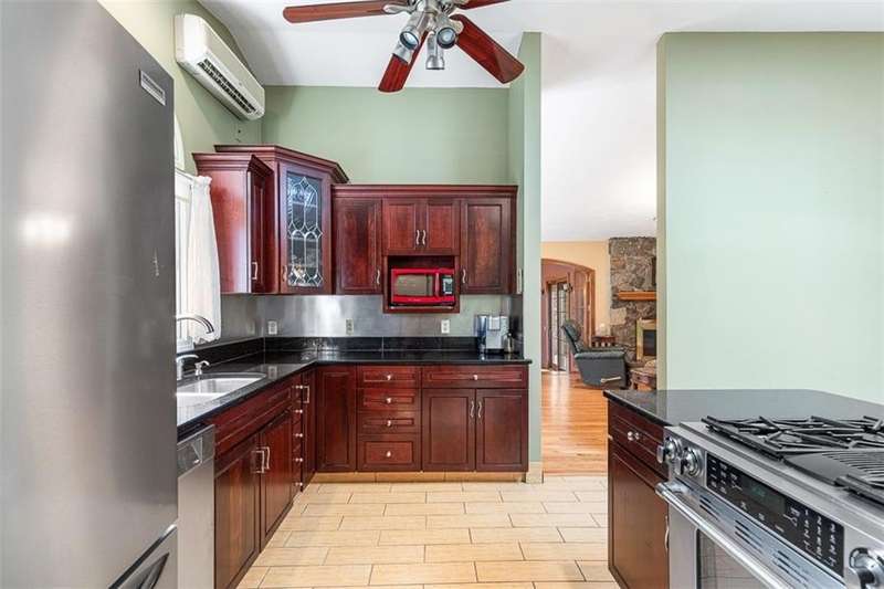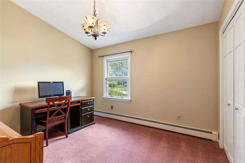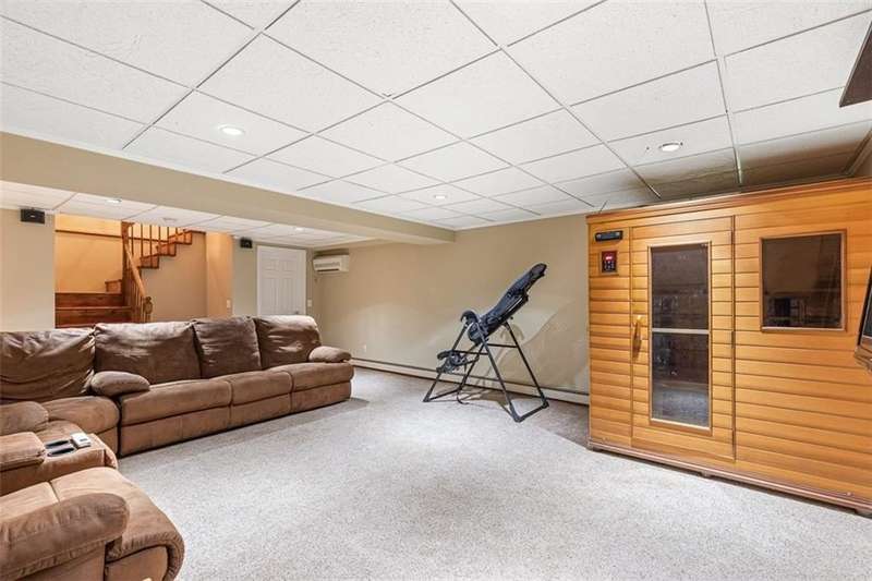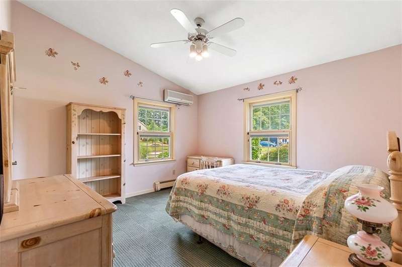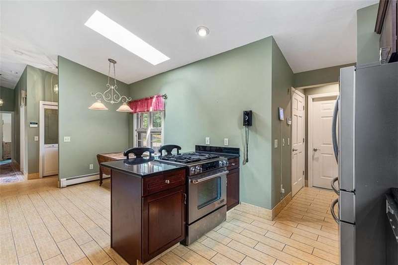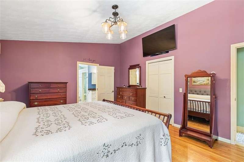 This 3-bed, 3-full-bath Ranch offers updates & enhancements that make it a stylish, efficient slice of modern country living. A floor-to-ceiling wood-burning fireplace in the living/dining space adds instant charm. The all-chestnut game room features hand-scraped Amish chestnut flooring & is bookended by large glass doors letting guests step out to 2 decks & the grounds. Pool table, dry bar, & stools all included. The skylighted eat-in kitchen includes hardwood cabinetry, stone counters, & stainless appliances with a pantry & laundry room just steps away. The owner’s suite delights with a walk-in closet, 2 additional closets, & luxurious private bath with separate vanities, a jetted tub, glass shower, radiant heat, & towel warmer. An additional 2 bedrooms nearby, while the lower level has 2 bonus rooms with California closet systems, finished living space with sauna, & a full bath with backup house water filter. The spacious backyard offers an expansive deck for outdoor living, a half basketball court, sand play area, & a bonus shed. Find an artesian well, town sewer, sprinkler system, low-voltage landscape lighting, invisible pet fencing, 5-zone heating, heated garage, 7 mini split A/C units, propane tank for a stovetop & gas stove. Surrounding areas include the Barden Family Orchard, Knights Farm, & Wright's Dairy Farm. Travel Route 44 for stores & dining along with the Apple Valley Mall & Smithfield Crossing. Hop down Route 146 to reach Providence nightlife in 20 minutes.