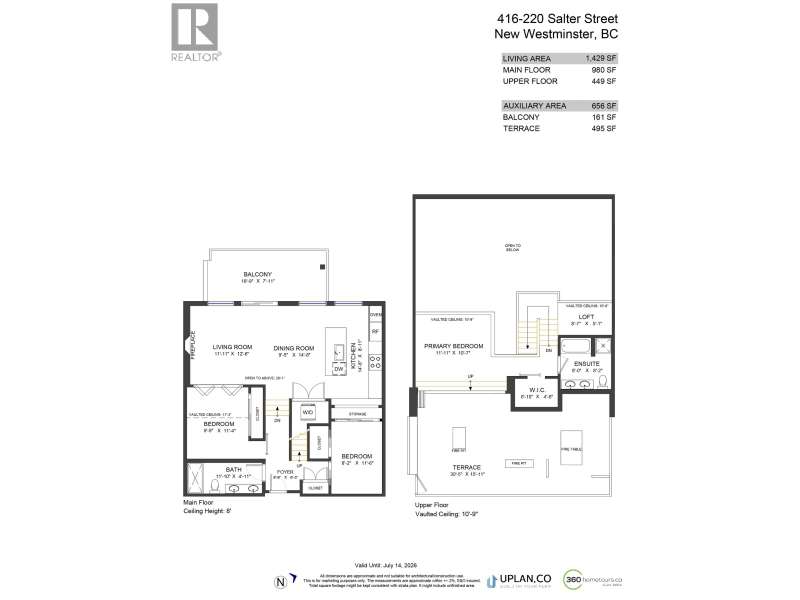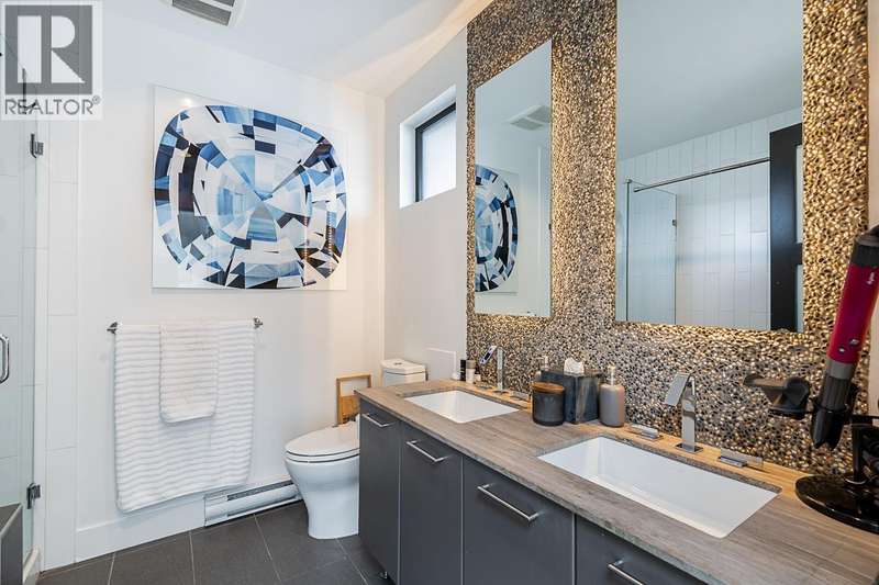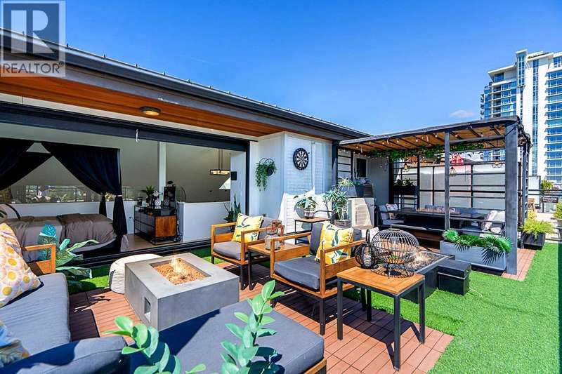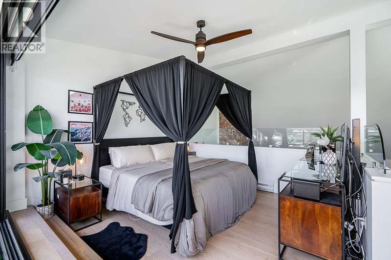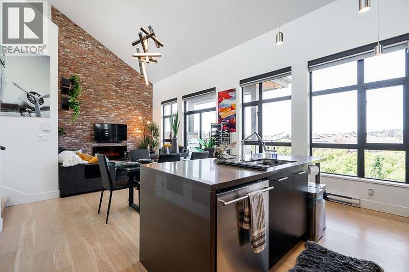 Step into the iconic GLASSHOUSE LOFTS & experience penthouse living like never before. This 3 bed, 2 bath showstopper spans 1,429sqft blending industrial charm with luxury. Main level presents open concept floor plan with dramatic 20ft ceilings, reclaimed brick feature wall & balcony overlooking Port Royal Park. Sleek kitchen with quartz counters, top of the line s/s appliances & gas cooktop. Upstairs offers spa-inspired ensuite leading to dreamy primary bedroom with folding eclipse doors opening to 500sqft private rooftop terrace complete with gas firepits & overlooking Fraser River. Notable features incl. A/C, white oak floors, automated shade & black out blinds, 2 side-by-side parking & XL locker. Unbeatable riverfront location steps to trails & Q2Q ferry. Showings by appointment. (id:58403)