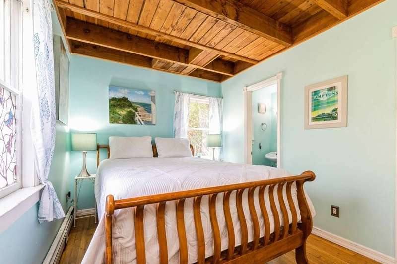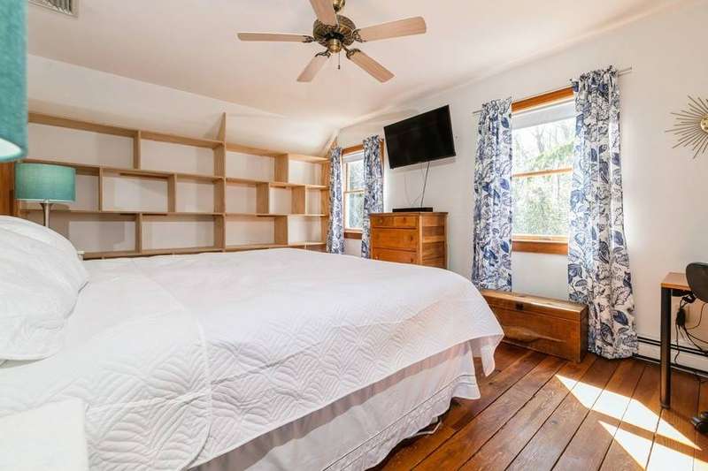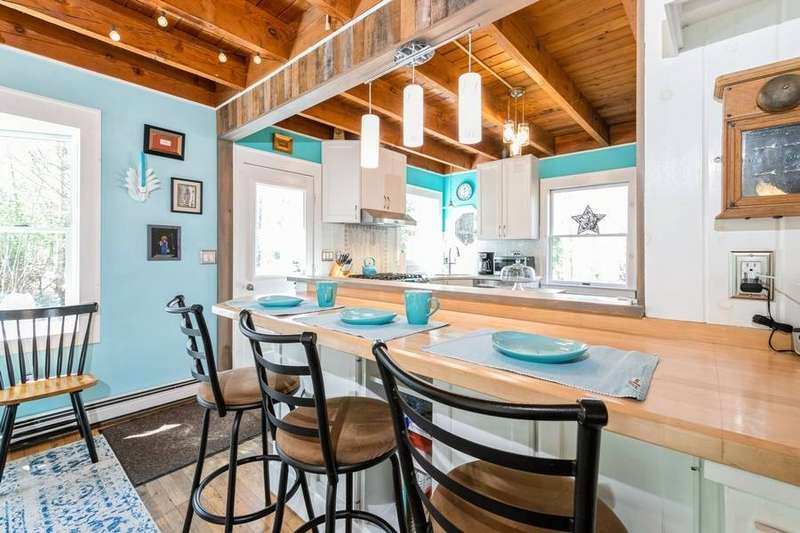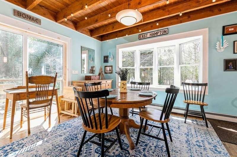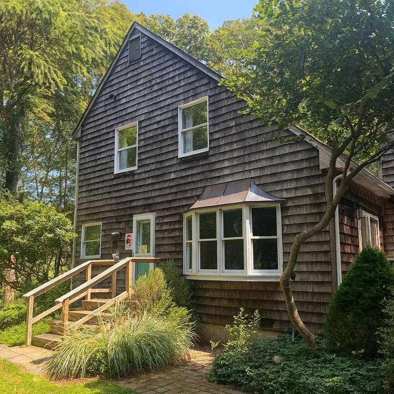 Privacy privacy privacy! Set on a quiet, wooded full-acre lot just two miles from East Hampton Village, this charming John Conner-built saltbox offers privacy and potential. The 3-bed, 2-bath home features rustic touches like exposed beams, a European wood-burning stove, along with a brand new kitchen with quartz countertops and updated appliances. Large bay windows and glass doors let in plenty of natural light, and a south-facing deck provides a private outdoor space to relax. The grounds feature a variety of beautiful specimen trees, including Hinoki Cypress, European Beech, Deodar Cedar, and Japanese Maple. With 50% total clearing allowed there's room for pool, pool house, or expand the home. Surrounded by high-end properties, this is a rare opportunity to create your East Hampton dream.