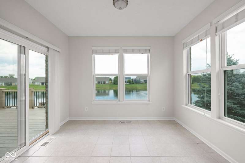 Welcome to this immaculate, move-in ready 2-bedroom, 3-bath ranch home in The Enclave at Avalon of Fishers. Built in 2007, this home offers over 3500 square feet of living space, featuring hard wood floors and an open concept layout incorporating an all-electric kitchen designed to please any cook. The sunroom and maintenance free deck combine to deliver expansive pond views for year-round relaxation. The spacious master suite with bay window leads to an ensuite bathroom that has a double-sink vanity, walk-in shower, linen closet and walk-in clothes closet with custom cabinetry. One additional bedroom, an office space, a second full bathroom, a laundry room with custom storage and access to the attached two-car garage complete the first floor. The finished basement has two daylight windows, enclosed furnace and sump pump rooms, a full bath with walk-in shower, a bonus/storm room, and ample unfinished storage space. The four-sided brick exterior, and paver-edged rock beds add charm, durability and low maintenance options. Recent updates include HVAC (2021) and full roof replacement (2024). All appliances stay, including washer, dryer, and water softener. The HOA covers lawn care and snow removal, offering worry-free living. The location is convenient to Hamilton Town Center, hospitals, restaurants, and specialty shops. Two top-rated schools, Thorpe Creek Elementary and HSE High School, are within walking distance. Residents enjoy access to the Avalon of Fishers Recreation Center amenities: swimming pools, basketball, tennis and volleyball courts, picnic gazebo, playground and walking paths linked to the Geist Greenway Trail. This home blends comfort, community and location for the perfect living experience.