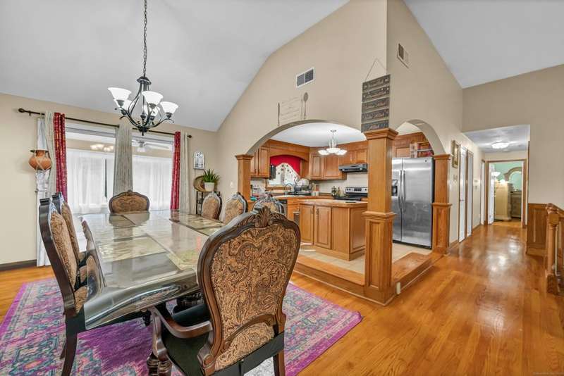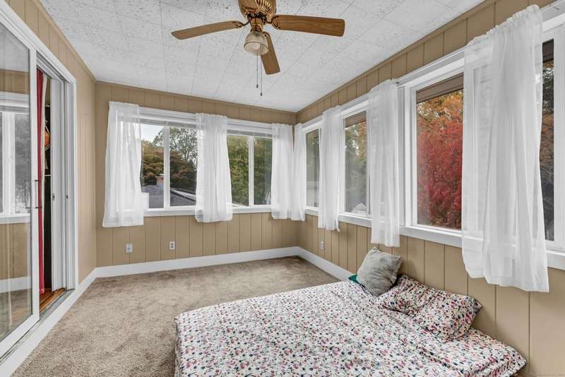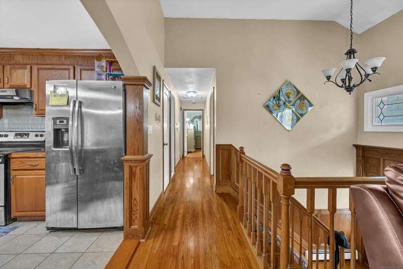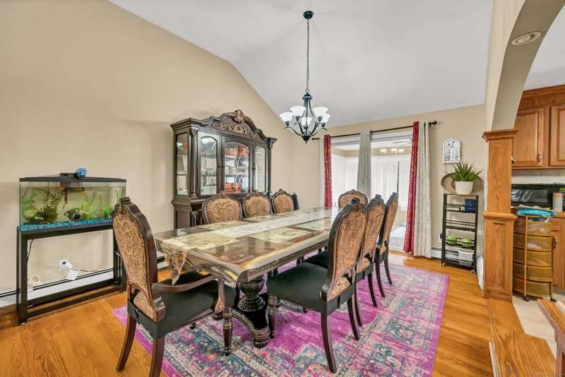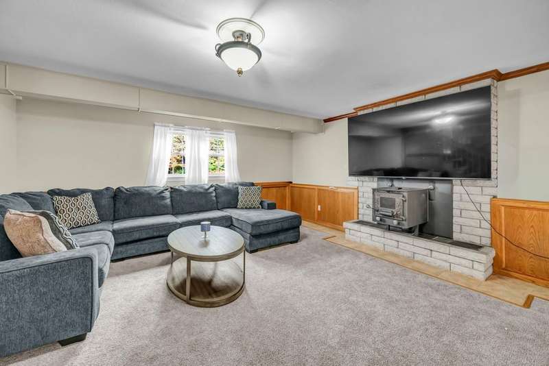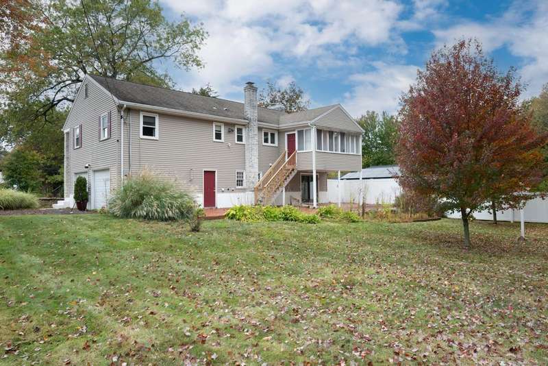 Spacious well maintained raised ranch on well manicured level corner lot waiting for its new owner to enjoy. Open bright living area features hardwood floors, cathedral ceilings and a stone fireplace. The kitchen features granite countertops, stainless steel appliances and ample cabinet space. Right off the formal dining room is a three season sunroom with views of the meticulously landscaped property where you can enjoy a morning coffee or afternoon tea. All three bedrooms are generously sized. The heated lower level features another fireplace with a wood-burning stove, wet bar, newer carpeting, additional bath, laundry, and walkout to the tiled patio. There is a large storage shed in the level backyard. The two car garage has a recessed area perfect for a work bench or storage. Public water and sewer is offered here as well.