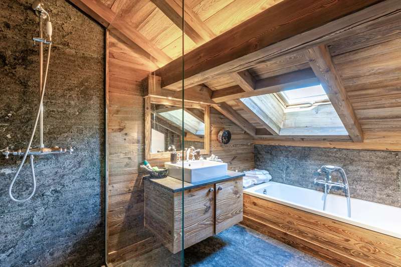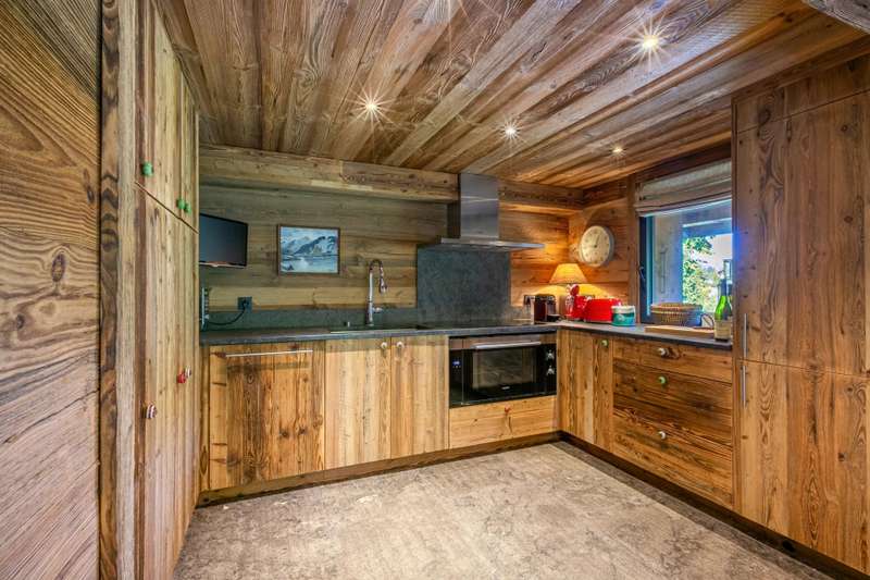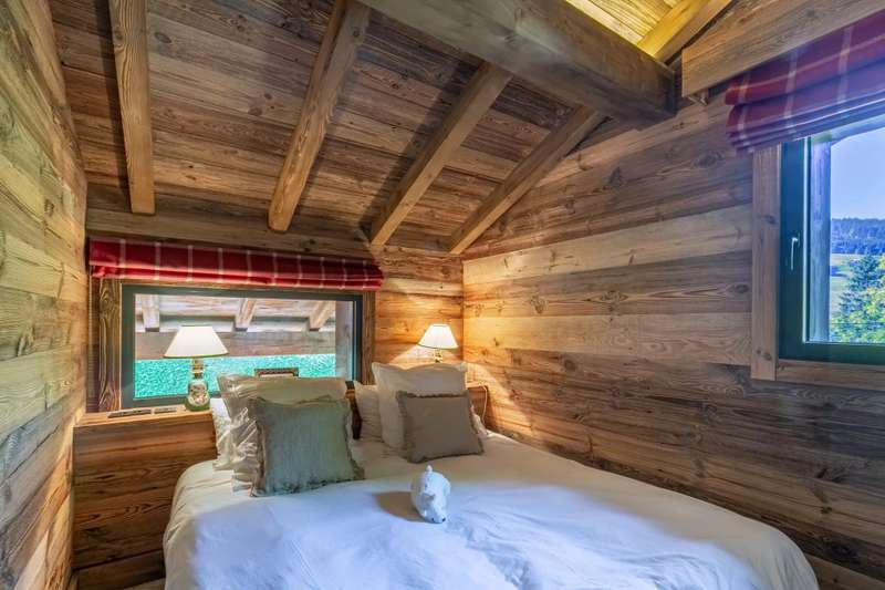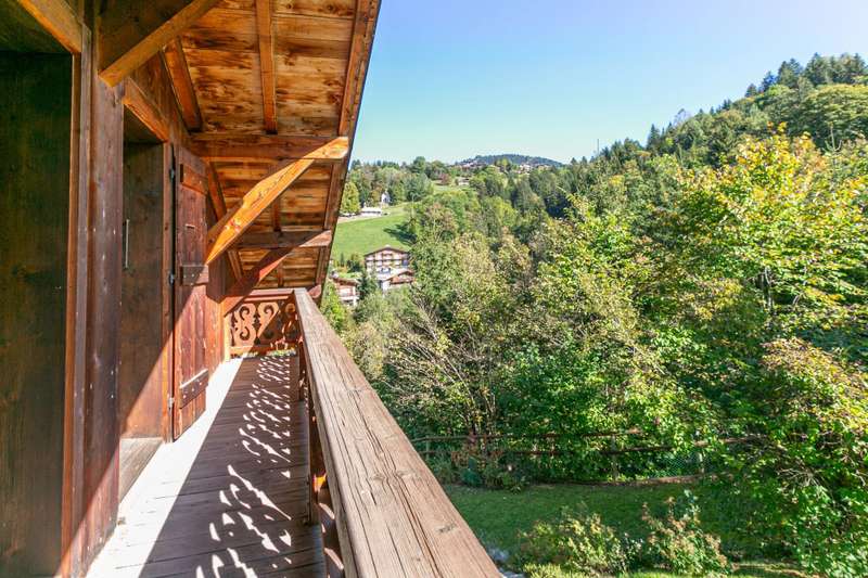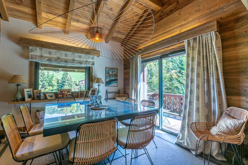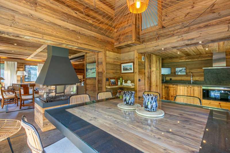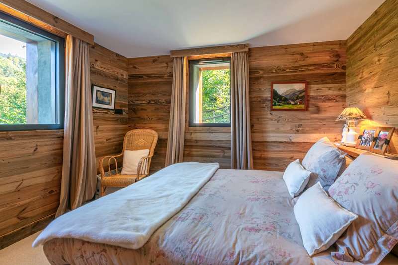 Just 300 metres from the pedestrian centre, set in a green setting, this chalet was completely renovated in 2015. The main chalet, built on three levels, has a large living room with open kitchen and balcony access, five bedrooms, three bathrooms, a TV lounge, a ski room and a garage. An independent mazot has two bedrooms and a bathroom.