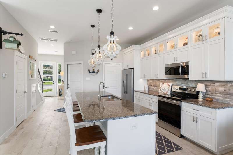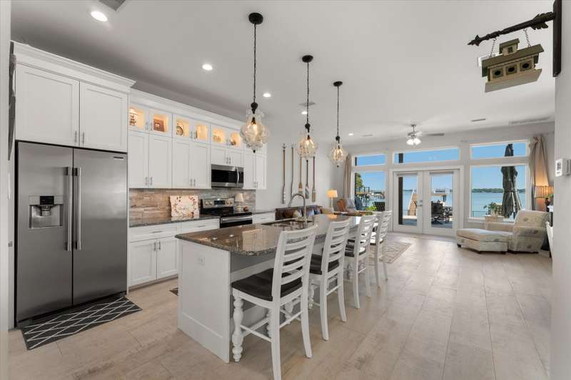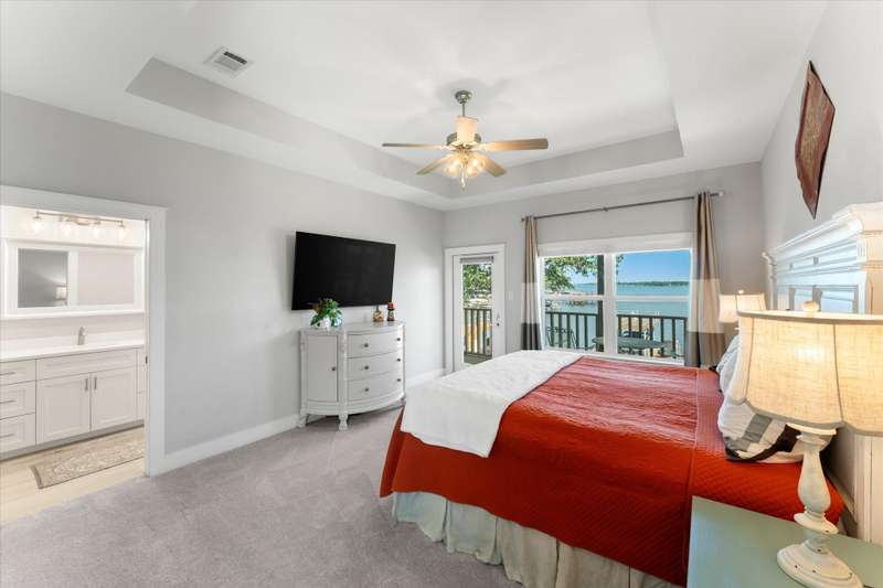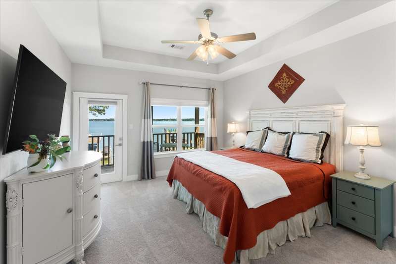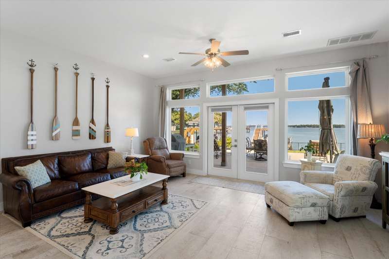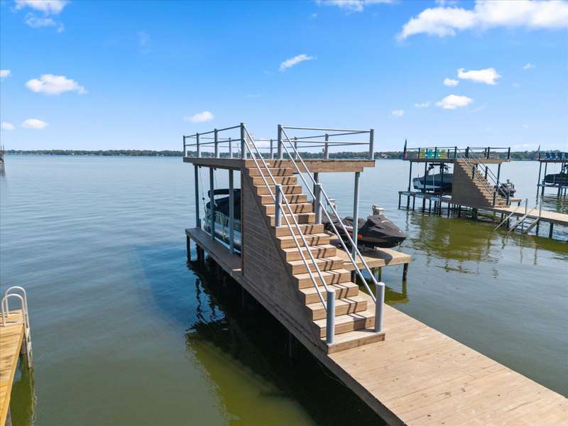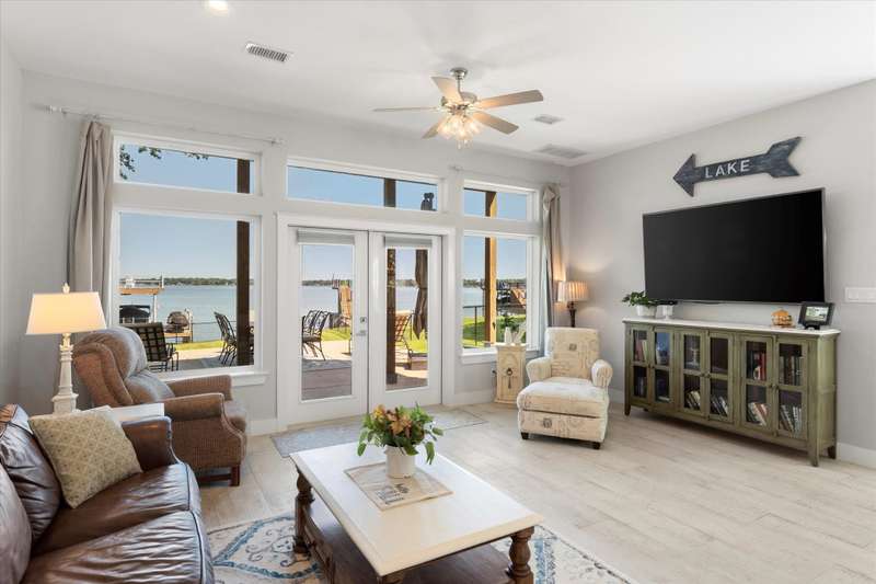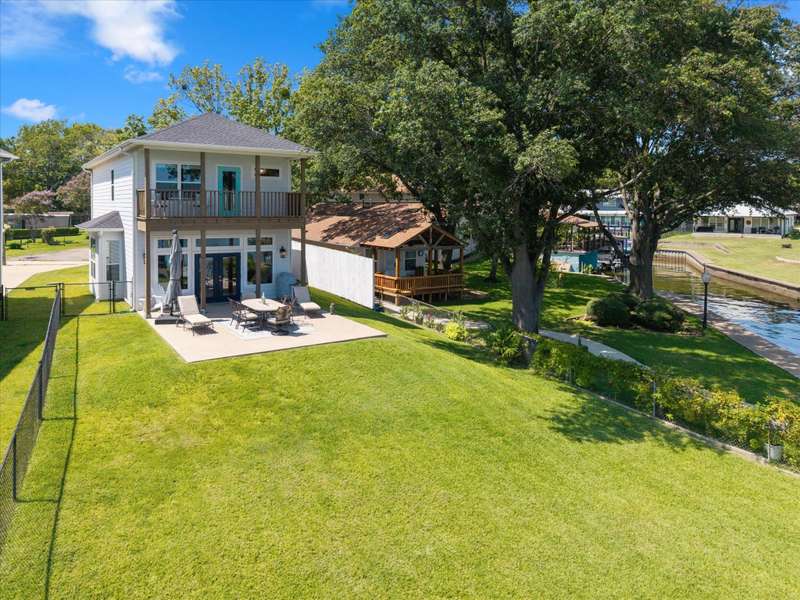Welcome to 162 Palisade Drive in Mabank, a beautifully maintained 2020 build offering 3 bedrooms, 3 bathrooms, and 1,867 square feet of living space. Situated on open water, this home captures the best of lakefront living with 10-foot ceilings, expansive views from living and primary suite, and an open-concept layout that continues to bring those views direct to you.Make yourself at home. Being sold fully furnished, this is truly a move-in ready turn key opportunity. Thoughtfully designed with comfort, convenience, and style in mind, all focused on lakeside living, this property blends modern living with the ultimate waterfront lifestyle.The main level features a spacious living area that flows to a large outdoor space, perfect for entertaining or relaxing. Upstairs, the primary suite includes a private balcony, creating an ideal retreat for enjoying both morning sunrises and evening sunsets.The property includes a well-appointed boathouse with a lift for a tri-toon boat, two jet ski lifts, a storage closet, and an irrigation system sourced directly from the lake.