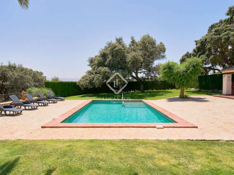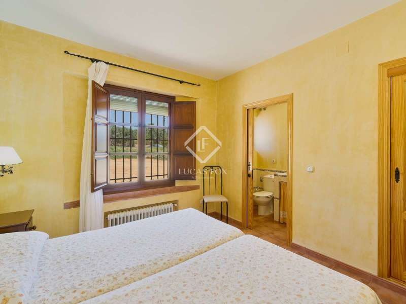 Lucas Fox presents this wonderful traditional Andalusian style rural house of 1000 m² built, on a plot of 60 hectares, with olive trees. Upon accessing La Finca, crossing a path between the olive trees, we arrive at a large esplanade with parking space for several cars. La Finca has its own vegetable garden, a paddle tennis court with changing rooms and a children's area. The exterior area is surrounded by mature gardens, with a large swimming pool. Still exterior, there is a large professional kitchen that overlooks the porch, with a dining room and barbecue area. The garden is prepared to have tents in a space of 400 m², ideal for organizing events or weddings. The hacienda is divided into four private apartments, with capacity for up to twenty people, which connect with a 70 m² common living room . The Torreón, the first apartment, was formerly the house's barn and is the largest on the estate. It has a living room with fireplace, dining room and equipped kitchen, five bedrooms, three of them with private bathroom, and a bathroom to serve the other two. The second apartment, El Pajar, as its name indicates, was formerly the haystack. It has a living room with a wood stove, dining room and equipped kitchen and two bedrooms with two private bathrooms. The third apartment is the same as the Pajar. The fourth apartment, El Llano, was formerly the landlord's house. It has a living room with fireplace, dining room and equipped kitchen, three bedrooms with three private bathrooms. The farm also has a rural use license, so it is not only an ideal place to live in contact with nature, but it can also be used for tourist purposes. Likewise, its 60 hectares of olive trees (1,200 centenarians and 2,200 young ones) can generate interesting agricultural production. Get in touch for more information.