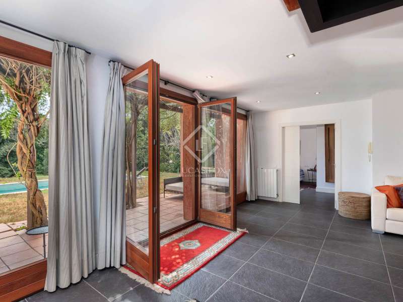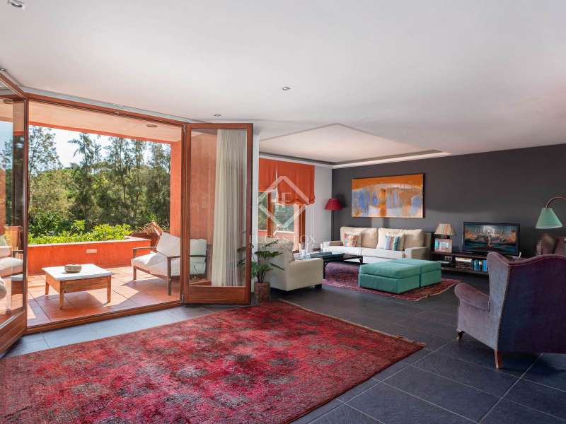 This fabulous luxury villa was built in 2006 on a large plot of 1541 m² which includes a wonderful garden with a beautiful pool area in a quiet and cozy setting surrounded by the famous Costa Brava golf course . Therefore, it enjoys beautiful mountain views and plenty of privacy. The magnificent garden surrounds La Finca, the pool area, the large terraces and outdoor areas that offer a wide variety of spaces to relax and spend time together. It is located in the most prestigious residential area of the town of Santa Cristina d'Aro: Golf Costa Brava, close to the centre and all the amenities of Santa Cristina d'Aro and a few minutes from some of the best beaches of the Costa Brava, such as Sant Pol beach in S'Agaró or Cala Sa Conca in Playa de Aro. The property stands out for its beautiful contemporary design, rooms full of character and exquisite decoration. It is distributed over three floors connected by a wonderful designer staircase. The access floor consists of a beautiful entrance hall; a guest toilet ; the garage; a large dining room living room with large windows, fireplace and access to the large terrace; a porch with an exterior dining area , and a chillout area with wonderful mountain views. In addition, it has a fantastic equipped kitchen, a second dining room, an en-suite bedroom with a full bathroom and a utility room. The lower floor houses a spacious living room with access to the garden with swimming pool and two large double bedrooms en suite with full bathroom . Finally, the upper floor has a huge hall and two double bedrooms en suite with a full bathroom and a private terrace with beautiful views. This is without a doubt a unique property in a privileged setting, so please do not hesitate to contact us for more information and to arrange a visit.