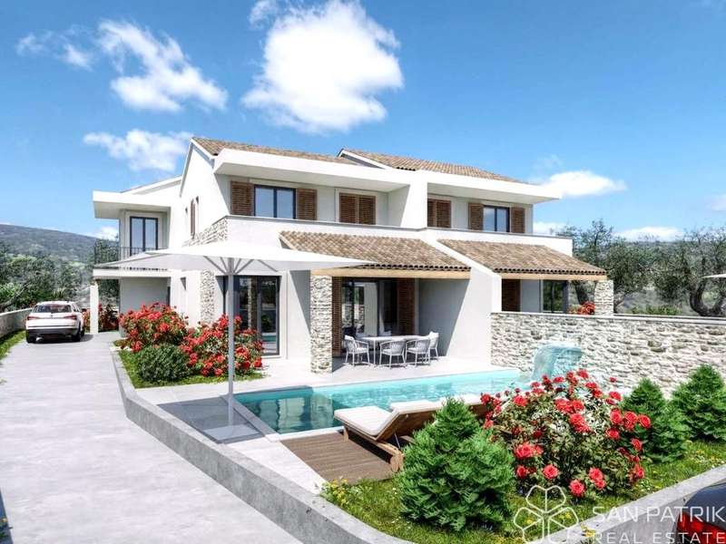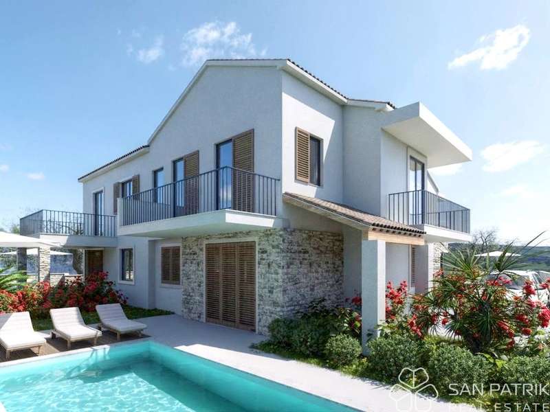 In a quiet part of Jezera on the island of Murter, a high-quality residential building with four modernly designed duplex units is in the final phase of construction. The building is conceived as a house divided into four parts, each with its own entrance, yard, and swimming pool.