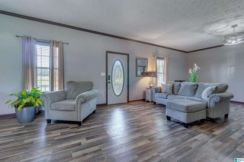 PRIVATE COUNTRY HOME would suit a growing family in need of a Second Master Suite or a Mother-In-Law plan. This 4-bedroom, 3 full bath home is MASSIVE and measures 2,930 SF of finished living space. Minutes from downtown for quick business transactions and only 5 minutes from I-65 Exit 208. LARGE bedrooms, OPEN FLOOR PLAN LIVING easily accommodates a large family. Your MASTER bedroom and bath features his & her closets and double vanities. Two additional bedrooms and a second full bath are also on the 2,000 SF main level. The kitchen features a commercial side-by-side refrigerator/freezer (17 cu ft ea.), 21 linear feet of countertop, ample storage, a breakfast bar & separate dining area. Look upstairs for an additional 930 SF, a second master bedroom, full bathroom, kitchenette and a large living area great for movie night or just entertaining a large family gathering. The full 2,000 SF unfinished basement has poured concrete walls, stubbed plumbing and a storm shelter.