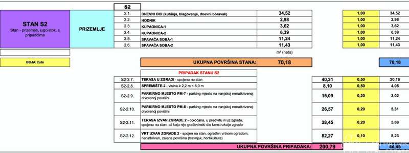 Apartment BS2 - Ground floor - living area 70.18 m2 (2 bedrooms + 2 bathrooms) + terrace (40 m2 - SE) + second terrace (28 m2) + storage room (8 m2) + garden (82 m2) + 2 outdoor parking spaces PM7 & PM8, total net area 116.63 m2 = €375,000