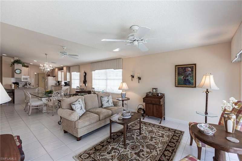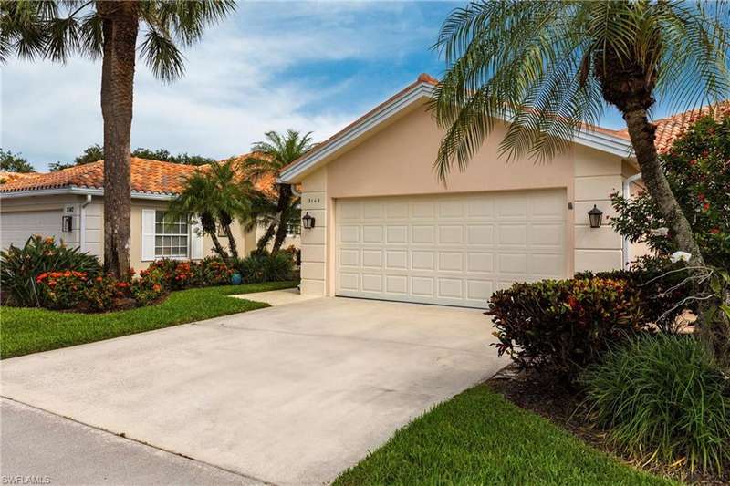 Lovely North Naples extended Capri villa with 140 more square feet of living space inside, featuring 2 bedrooms, 2 bathrooms, open den area, great room, and 2 car garage. Serene, extra wide water views and very private with no homes across the lake from this one. New clay tile roof was installed this year! Poly-B pipes were replaced in 2016. Andorra Court residents enjoy a very short drive to the gate and a short stroll over one bridge to the community restaurant and amenities center! Less than 5 miles to the ever popular Vanderbilt Beach and 4 miles to the shopping and dining gem - Mercato! There is so much to be a part of here - Tennis, Pickleball, Bocce, Gym with lap pool, 2 heated resort pools, miles of paved walking paths and so much more! You will love this home, this location, and this community!!