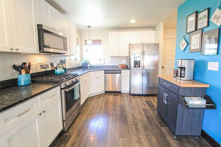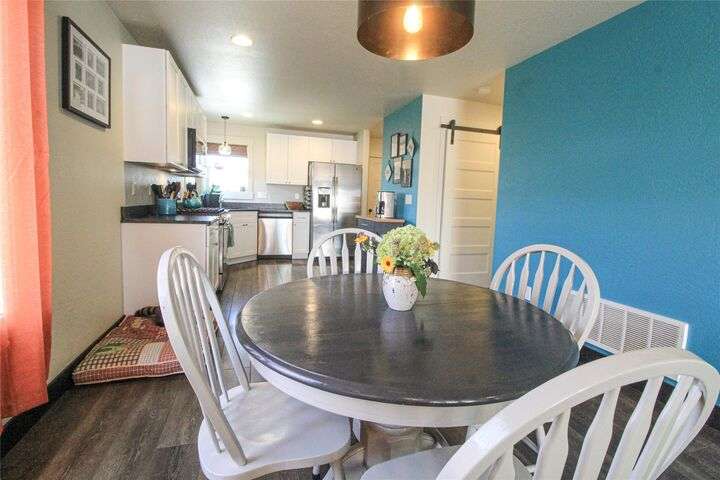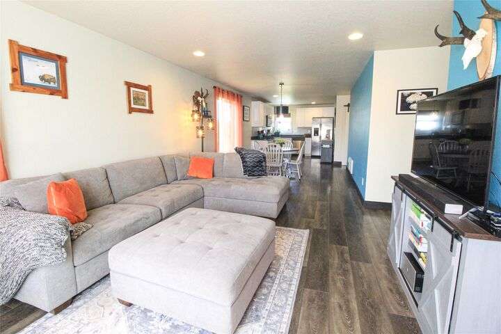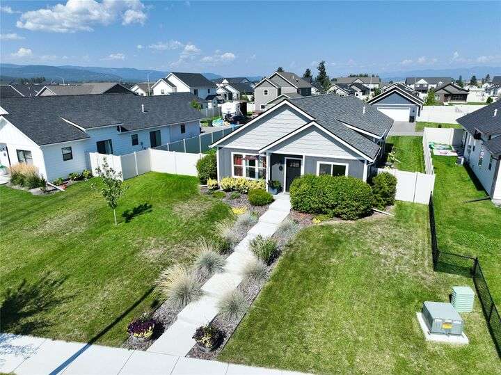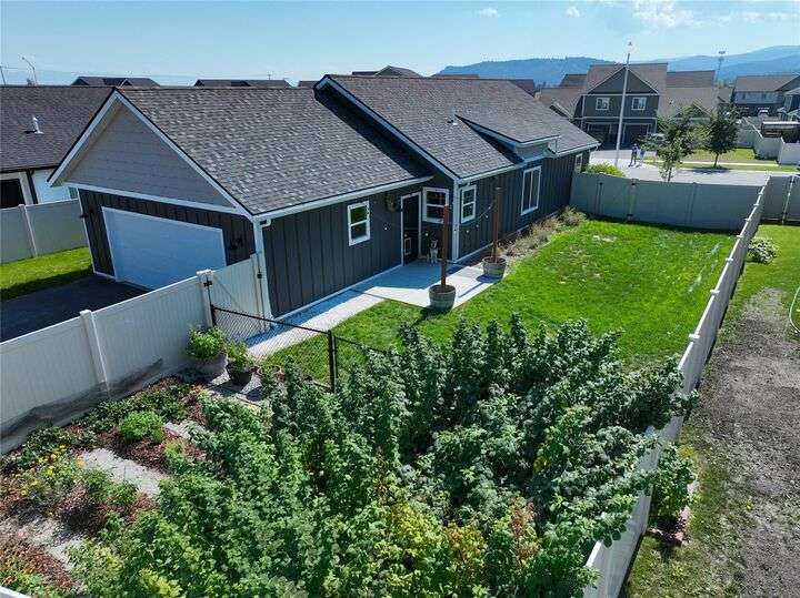 Welcome to this beautifully maintained single-level home in the sought after Meadows Edge neighborhood, just minutes from downtown Kalispell. Built in 2020, this home offers modern comfort with thoughtful upgrades—and the seller is offering $5,000 at closing towards buyer's closing costs or rate buy-down! Enjoy the outdoors in the fully fenced side yard, lushly landscaped & complete with a dog door, perfect for pets and Montana outdoor living! This gem is a gardener's delight, with an impressive array of raspberry bushes, flowers, fruits and vegetables. Inside, the open floor plan makes for easy living, with a functional layout perfect for any stage of life. The well-managed HOA keeps things simple, providing snow removal, common area maintenance, and access to walking trails, playground and a dog park. With close proximity to schools, shopping, and Logan Health, this home combines peaceful neighborhood living with everyday convenience.