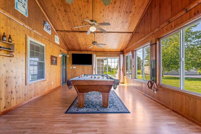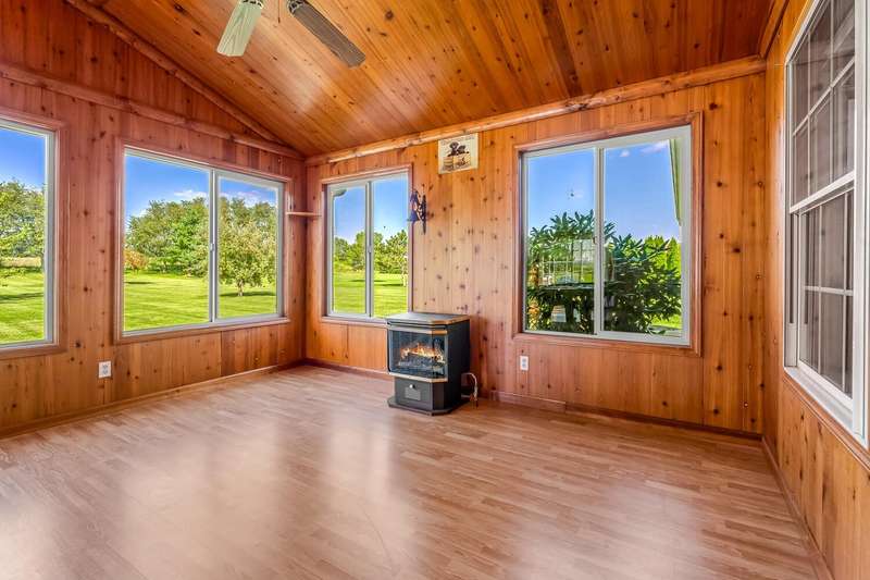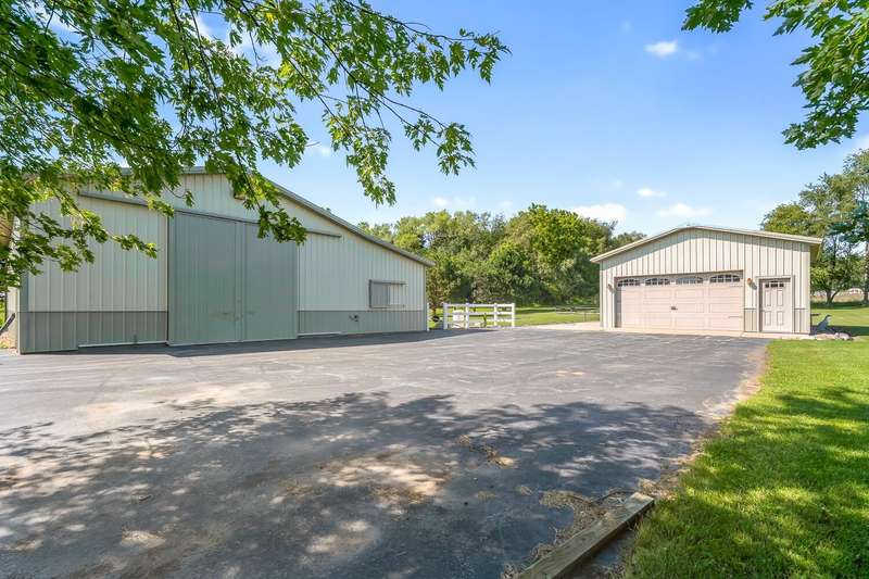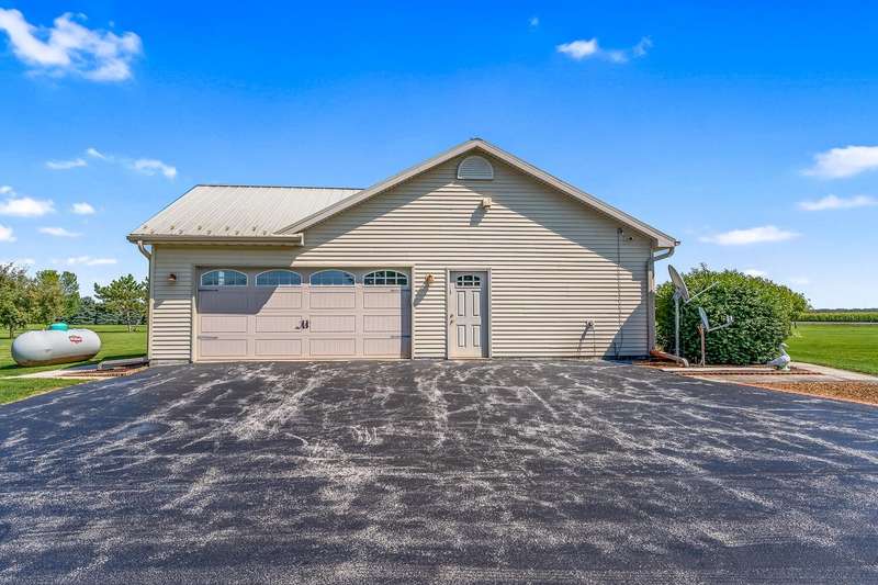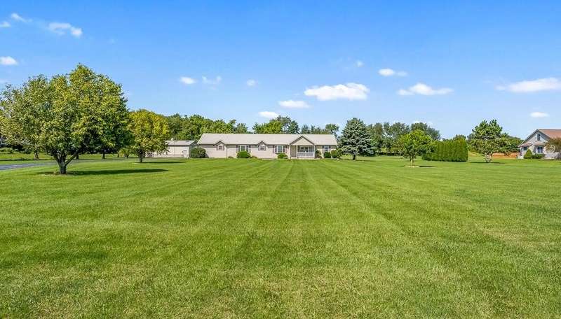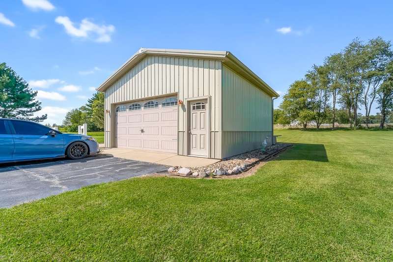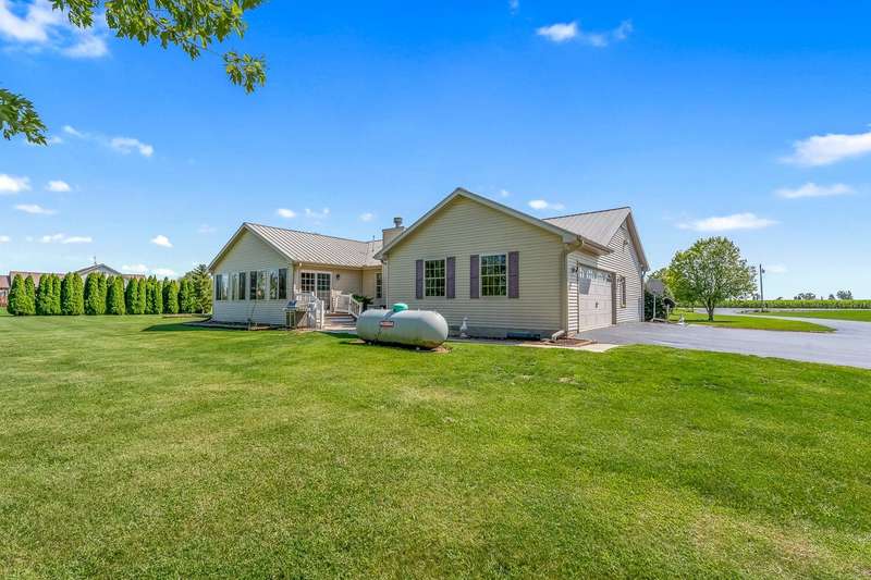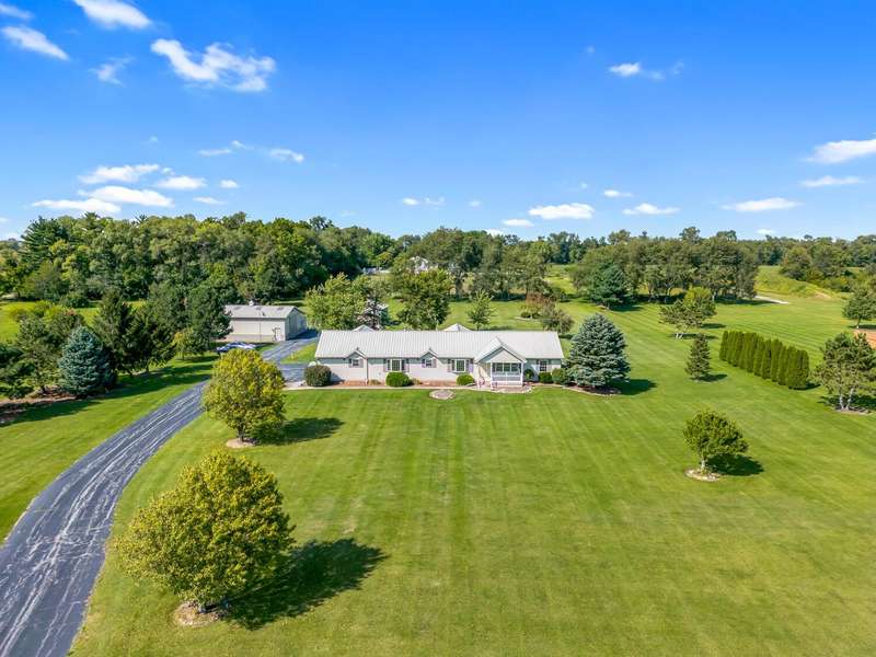 Looking for a quiet ranch style home with a pole barn in a peaceful location - look no further. This 3 bedroom, 2.5 bath home features a large kitchen with quartz countertops, 5 acres, pole barn, generator, an extra garage, a 3 season room for entertaining, fireplace, metal roof, a heated, attached garage and a tankless water heater. Don't miss the opportunity to call this house your home.