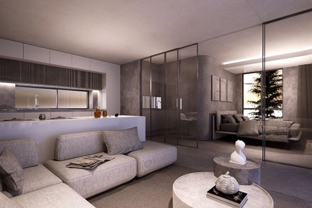 The interior of the apartment is characterized by a modern aesthetic, incorporating sleek finishes and contemporary design elements. The living areas are thoughtfully arranged, maximizing both comfort and practicality. Natural light fills the space, creating a bright and inviting atmosphere.