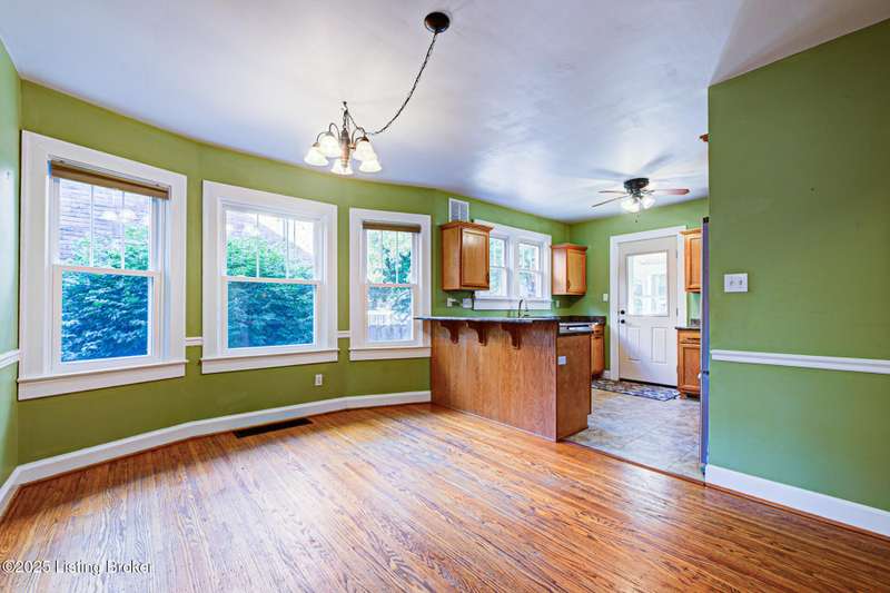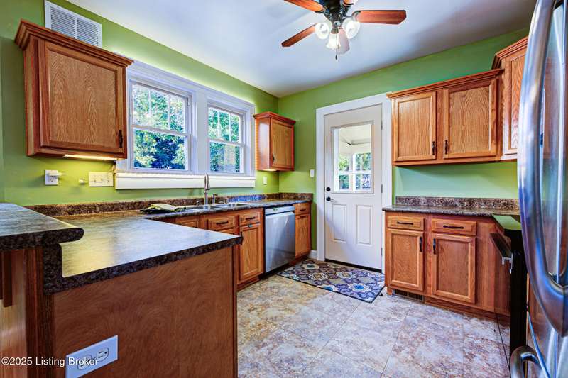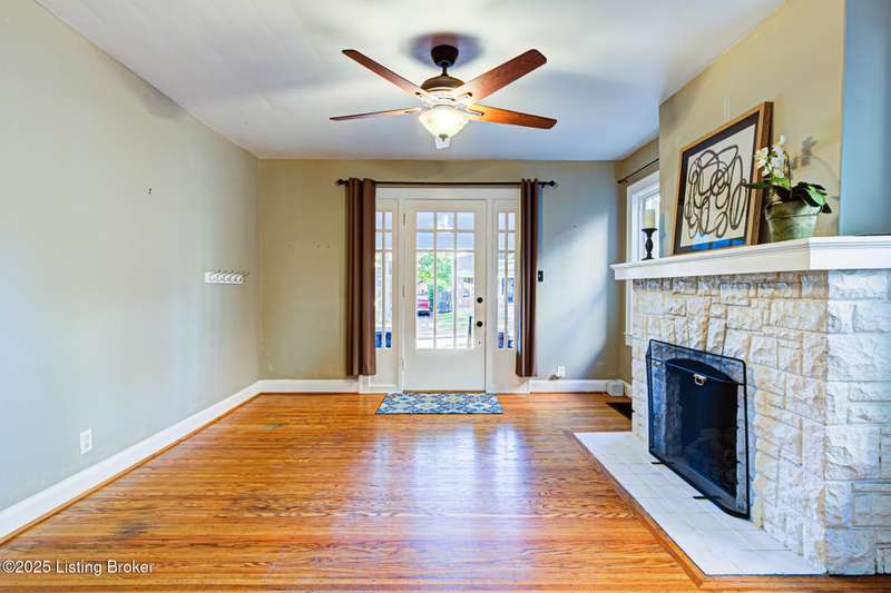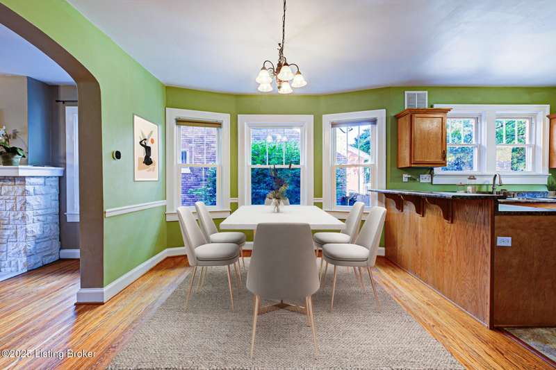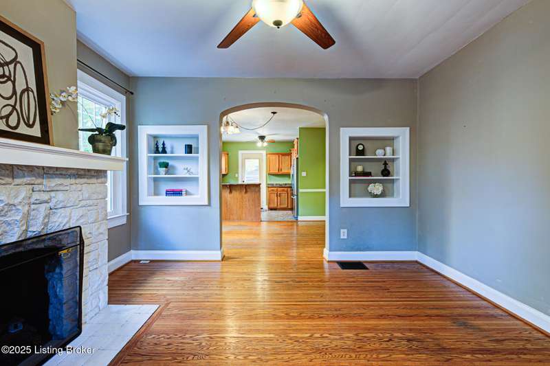 Welcome home to this charming St Matthews bungalow, just steps away from shopping, dining, and beautiful Seneca Park! Enjoy time on the covered front porch complete with a swing - an inviting spot to enjoy morning coffee. Inside the living room showcases a beautiful stone fireplace, with built in bookshelves and hardwood floors that flow thru the living room, dining area and the hallway on the first floor. The updated kitchen features higher end stainless steel appliances, tile flooring, an abundance of cabinetry, a breakfast bar, an ample sized dining area for a large table and chairs with lots of natural sunlight - for casual meals or homework time. The two first floor bedrooms are large and offer bright and comfortable spaces. They have hardwood flooring under the newer carpet (Not sure of the condition). Additionally, there is a full bathroom. Upstairs, you'll find two large bedrooms with considerable size closets, another full bath and extra closet storage in the hallway. All the paint, carpet, windows (including the basement), and storm doors have all been updated. Step out the back door and enjoy the large, private, fenced in backyard. A storage shed adds extra convenience.