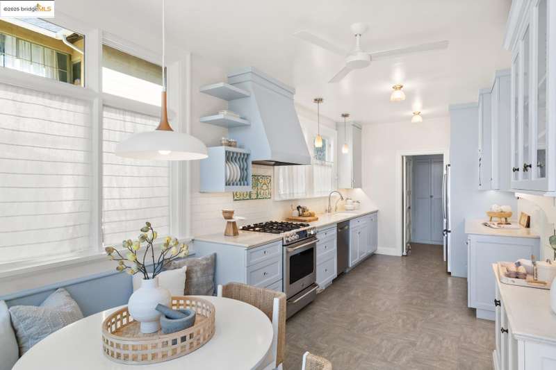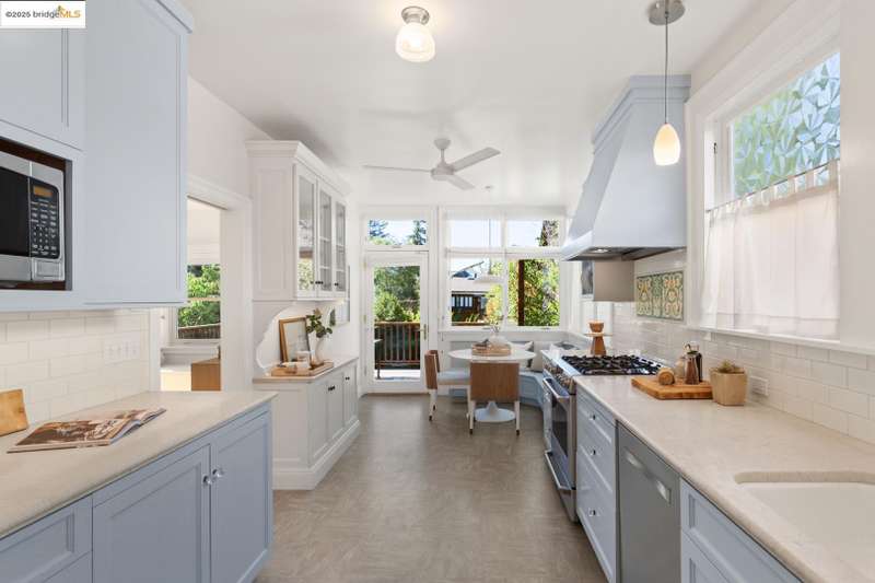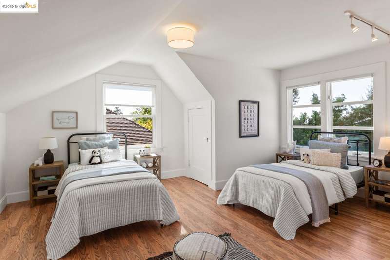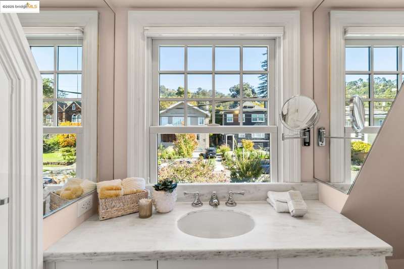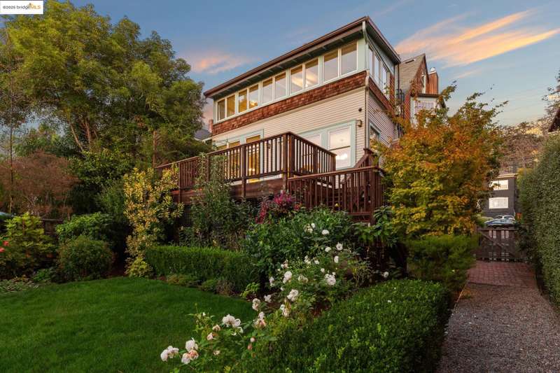 Set on a quiet street in the heart of the Elmwood, this spacious & updated Queen Anne Victorian has timeless elegance. A welcoming foyer opens to grand, light-filled living & din rooms featuring fireplaces, tall ceilings, gleaming hardwood floors. Expansive, tastefully remodeled eat-in kitchen is a chef’s dream, boasting top-of-the-line appliances, custom cabinetry, & refined finishes. Kitchen/dining room flow seamlessly onto a sunny deck overlooking beautifully landscaped flowering garden & greenhouse - a private sanctuary. On the 2nd floor, 3 bedrooms, including a luxe primary suite & beautifully updated bathrooms. The 3rd floor has been transformed into a private second primary retreat - or an ideal space for relaxation, work, or guests. The full-height basement offers abundant storage & potential, while the lush garden invites play & outdoor enjoyment. A long driveway provides tandem parking for multiple cars. Meticulously maintained & thoughtfully updated, this exquisite home us located in one of Berkeley’s most desirable neighborhoods—just moments from UC Berkeley, Elmwood shops, cafes, renowned restaurants, & scenic trails in Claremont Canyon.