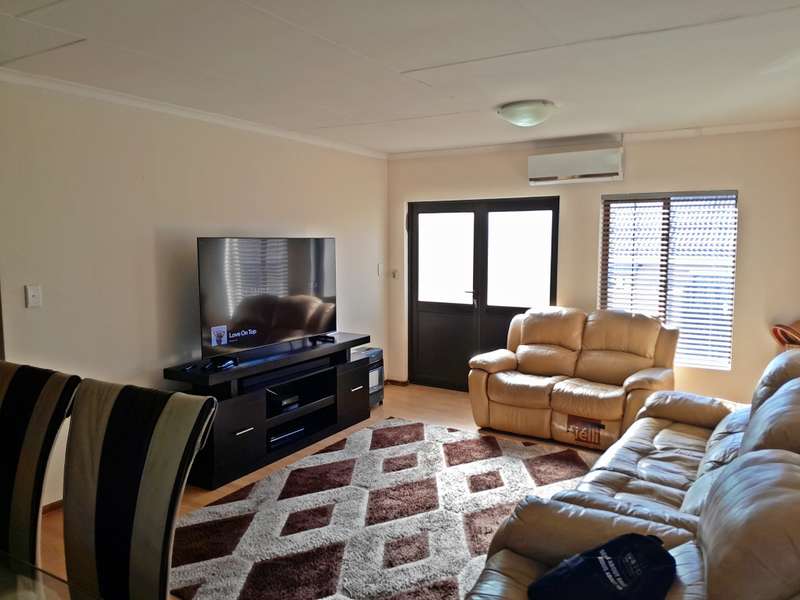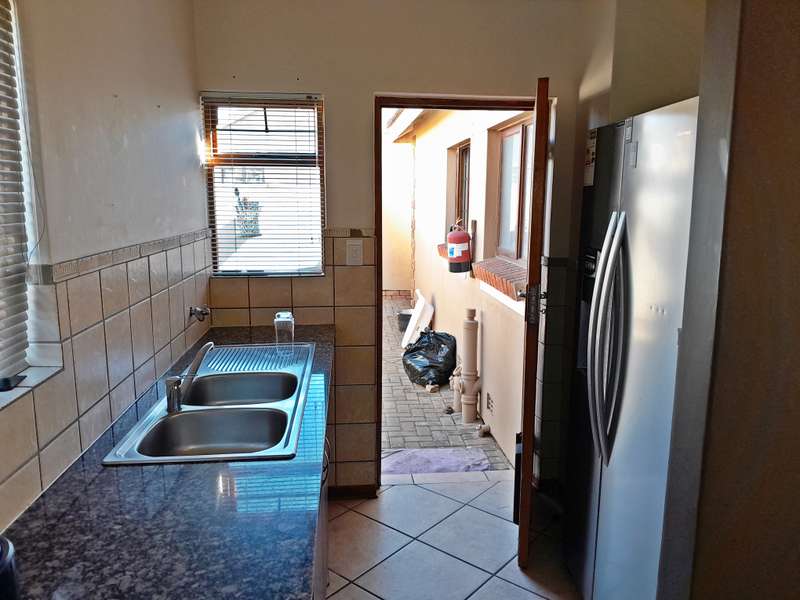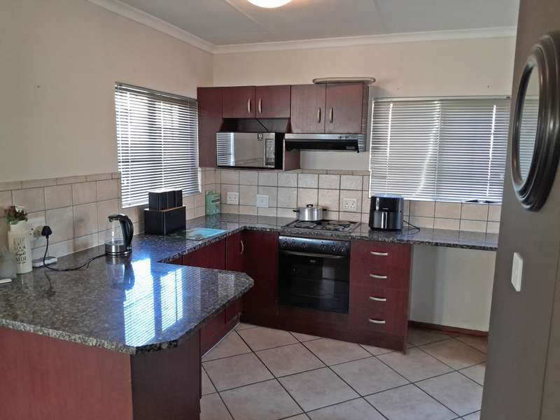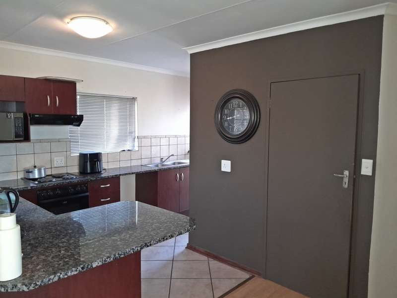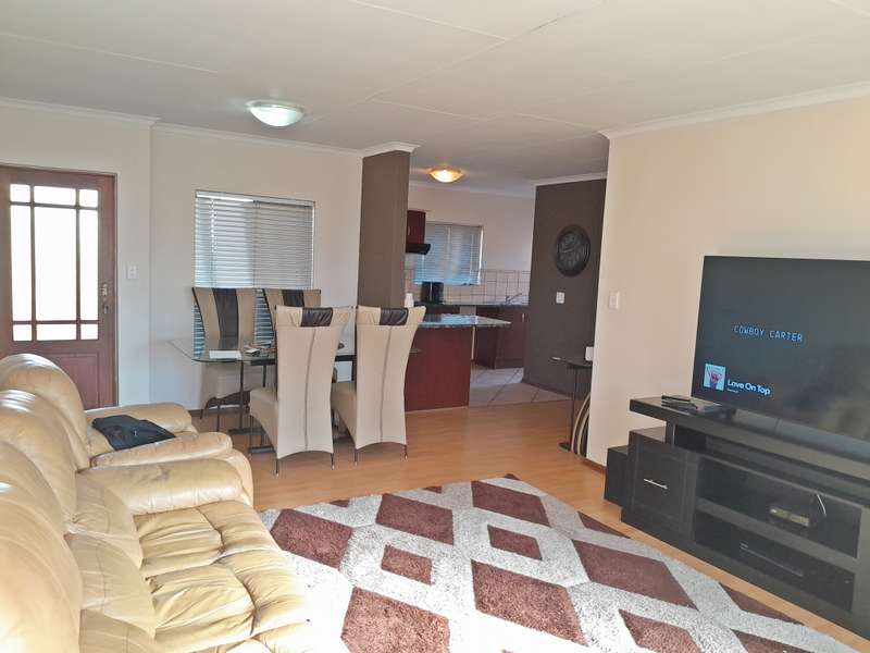 Step into modern comfort with this stylish townhouse nestled within Northen Suburb. The inviting ambiance begins with the open-plan lounge and kitchen area, boasting sleek tiled floors for easy upkeep. The kitchen, generously sized and thoughtfully designed, offers ample storage along with a convenient pantry, ensuring both style and functionality for your culinary endeavors. This residence features three bedrooms, each adorned with plush laminated flooring and built-in wardrobes for optimal comfort and organization. Two bathrooms, including a full suite in the master bedroom, provide added convenience, complete with tubs, basins, and toilets. Outdoor living is a delight with a spacious backyard boasting a lush lawn and a charming braai area on the patio—ideal for hosting gatherings or enjoying alfresco dining. Parking is a breeze with a single garage and a shaded carport, offering secure accommodation for vehicles. Located near North Ridge Mall and Virgin Active Gym, Schools, residents have easy access to shopping, dining, and recreational amenities. Embrace modern living in this chic townhouse, offering comfort, convenience, and community all in one desirable package.