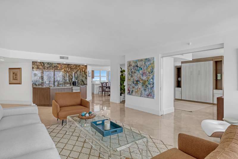 Stunning views from Ocean to intracoastal in this spacious 3BR/4BA unit. Directly on the ocean. Large cover balcony. Den has a full bathroom with murphy bed to make a fourth bedroom with privacy sliding door when needed. Bedrooms are split floor plan with each have their own bathrooms with water views. Marble floors, impact windows throughout. Beautifully furnished. Building amenities 24 hr. concierge, pool, spa, tennis court, gym, game room, 1 garage parking space.