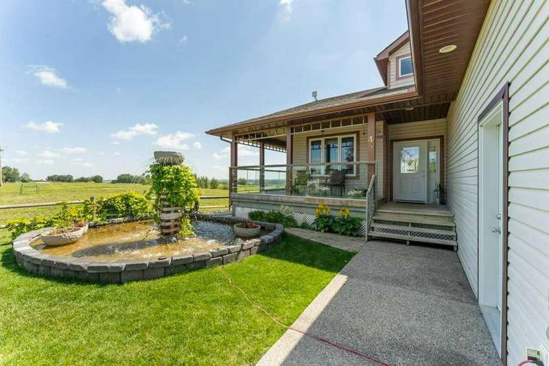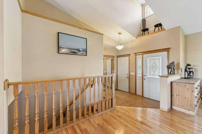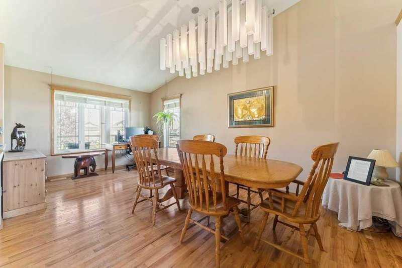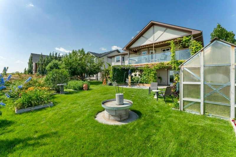 Welcome to your dream home in the desirable golf course community of Speargrass! Perched high on the ridge with panoramic views of the Bow River, this expansive walkout bungalow offers the perfect blend of indoor comfort and outdoor beauty. Step into a gardener’s paradise—this meticulously landscaped property features multiple garden beds, lush greenery, vibrant blooms, and charming vine-covered partition that creates the feel of a serene outdoor room. A tranquil front fountain flows down into a peaceful pond in the backyard, offering a calming retreat right at home. Inside, the spacious main level boasts an open-concept kitchen overlooking a cozy living room with gas fireplace and surrounding built in cabinets—perfect for entertaining or quiet nights in. The elegant, separate dining room is highlighted by vaulted ceilings, artistic and striking lighting fixture, creating a grand atmosphere for special gatherings and large family dinners. Step outside to enjoy your upper walk around deck overlooking the ridge, taking in expansive views of greenspace, ridge, river and nature. On the main level you’ll also find two generously sized bedrooms, two full baths, and a dedicated laundry room. The fully developed walkout basement offers incredible flexibility for multigenerational living or extended family stays, featuring a full second kitchen, large rec and family rooms, a third bedroom, full bath, its own laundry, and a private entrance that leads directly into the backyard oasis. An oversized double garage with high ceilings, provides ample space for vehicles, storage, and even a workshop for hobbyists or DIYers. Speargrass community has one of the finest 18 hole golf courses to enjoy and are currently in the process of building a fantastic new clubhouse with restaurant right in your community. Whether you're an avid gardener, golfer, a nature lover, or simply seeking peace and space, this unique home delivers it all. With sweeping views, exceptional layout, and unmatched outdoor living—this is Speargrass living at its finest. Speargrass is not an HOA community, however there is a active voluntary community association which holds several events and gatherings throughout the year, along with looking after the expansive pathway systems, our community green spaces, RV parking and lovely flowers around the community areas. Don't miss your chance to own this extremely well priced fully finished walk out bungalow, call your favorite Realtor to view today!