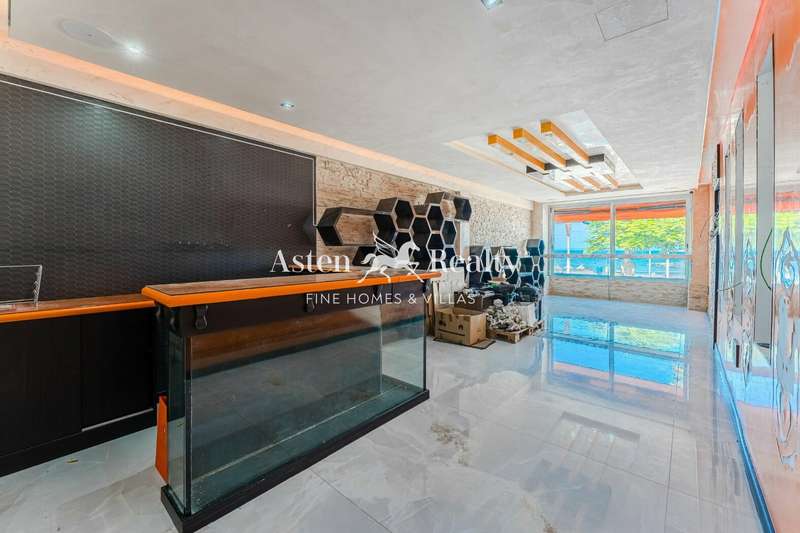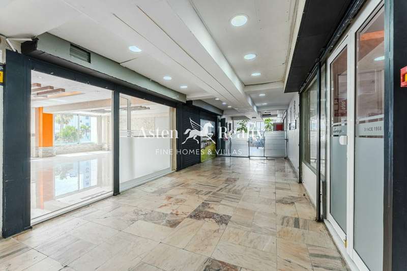 Privileged location on the seafront promenade, in the commercial area of Hotel Palm Beach, opposite the beach and Monkey Beach Club. Offers a wide range of commercial possibilities. Currently licensed as an office and for the sale of wine and tobacco.